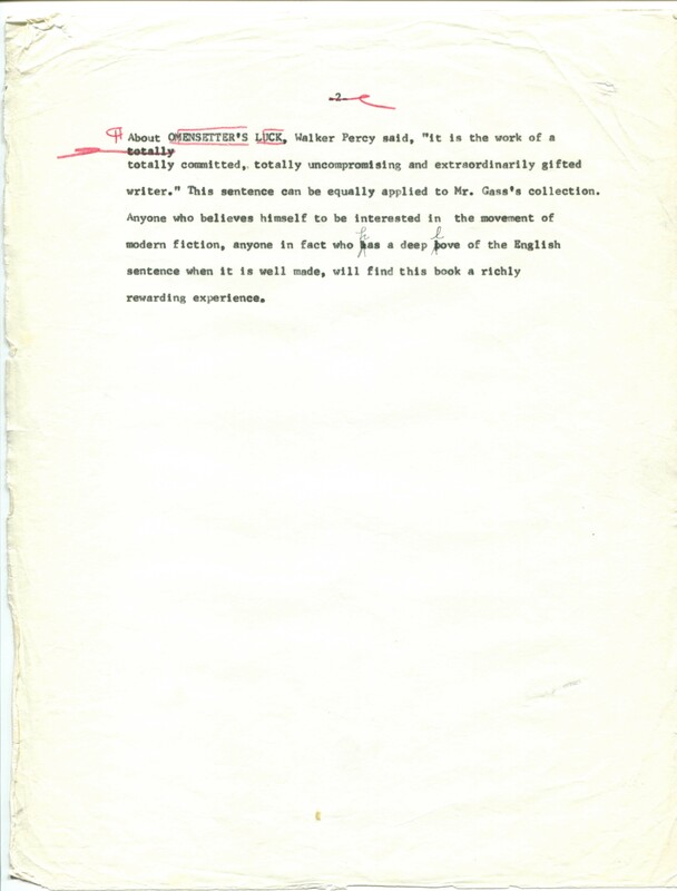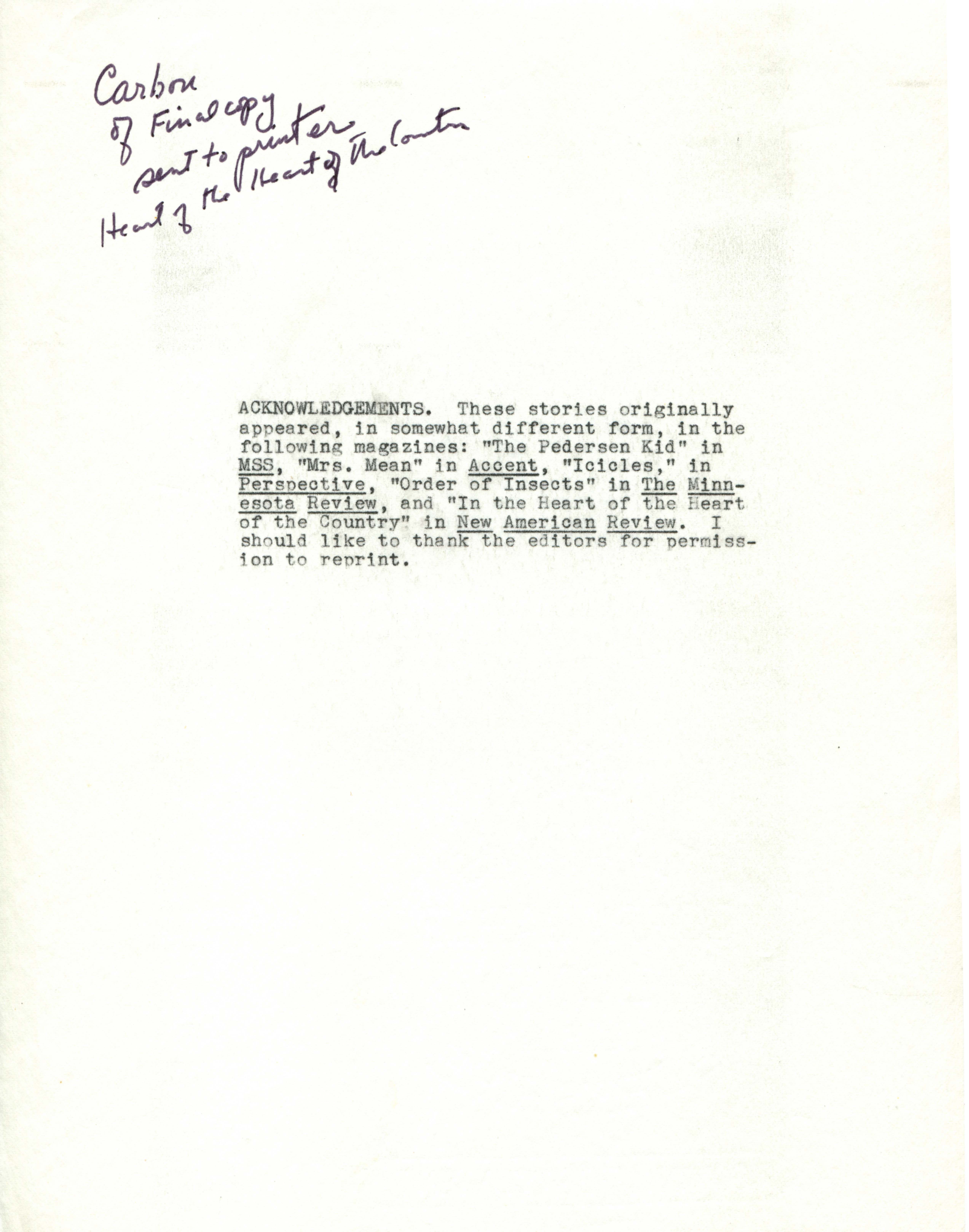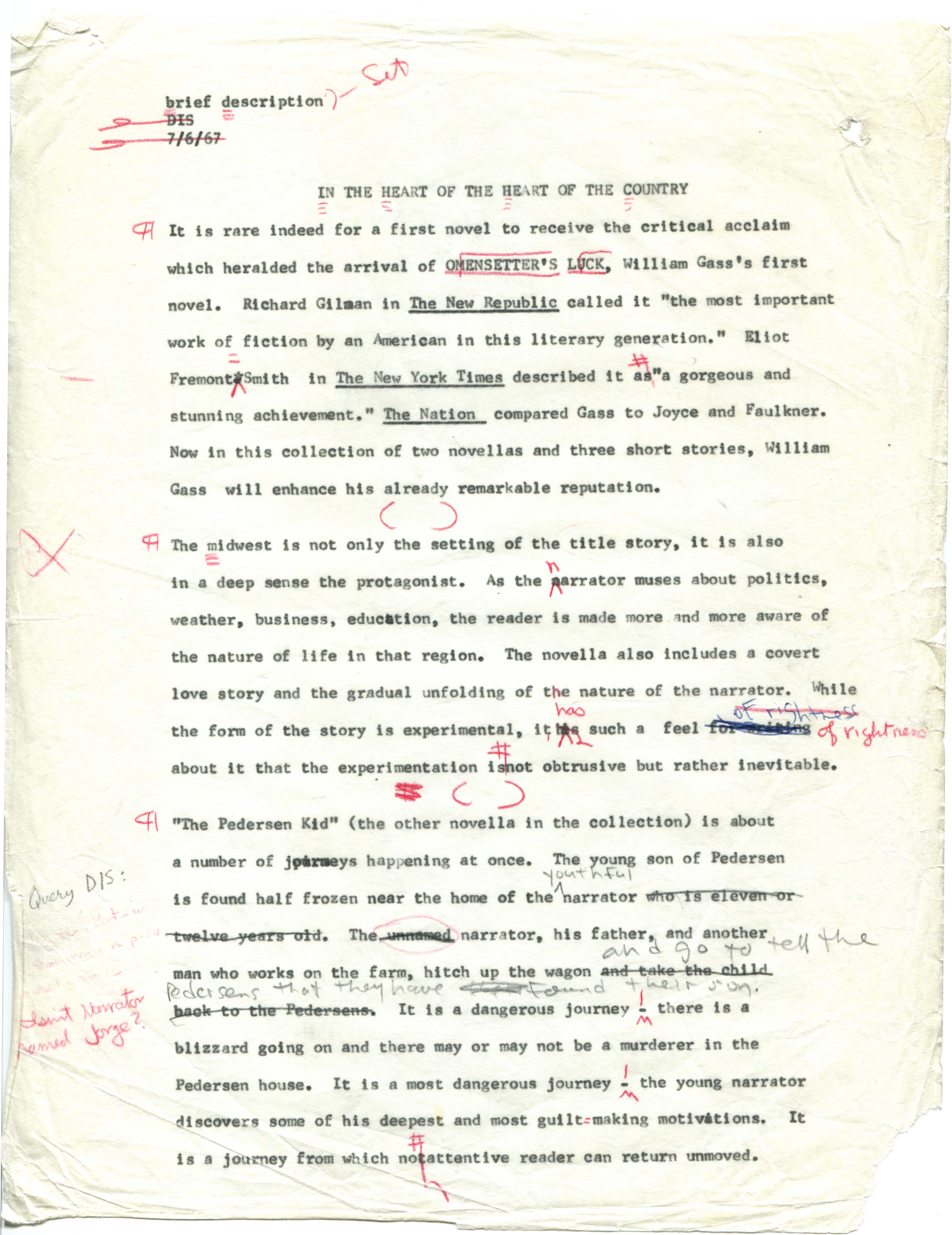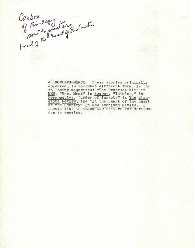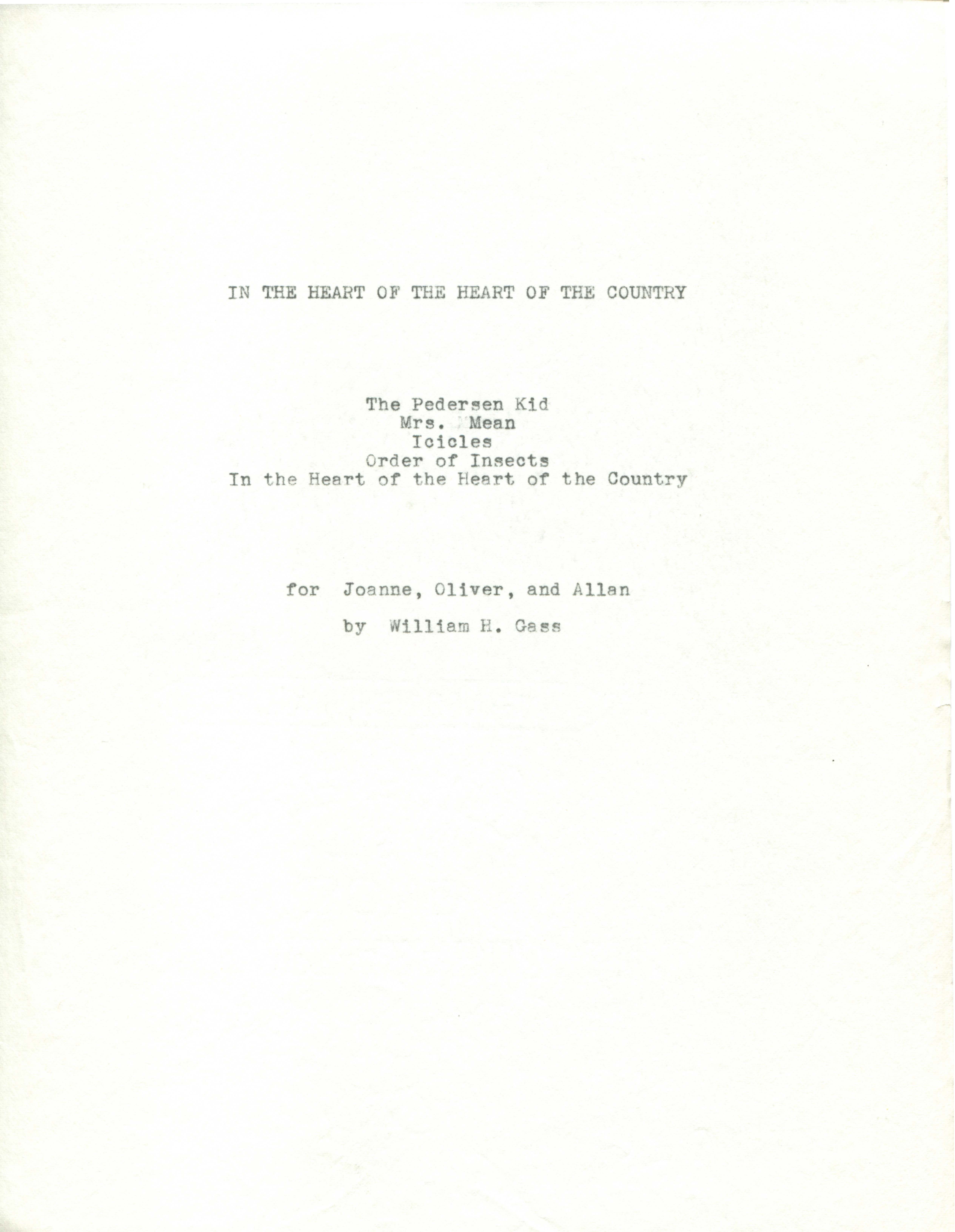Gass, William H. 1967. “Printer’s Final Copy of In the Heart of the Heart of the Country, July 6, 1967.”, William H. Gass: The Soul Inside the Sentence, accessed February 11, 2026, https://digitalexhibits.library.wustl.edu/s/gass/item/16341