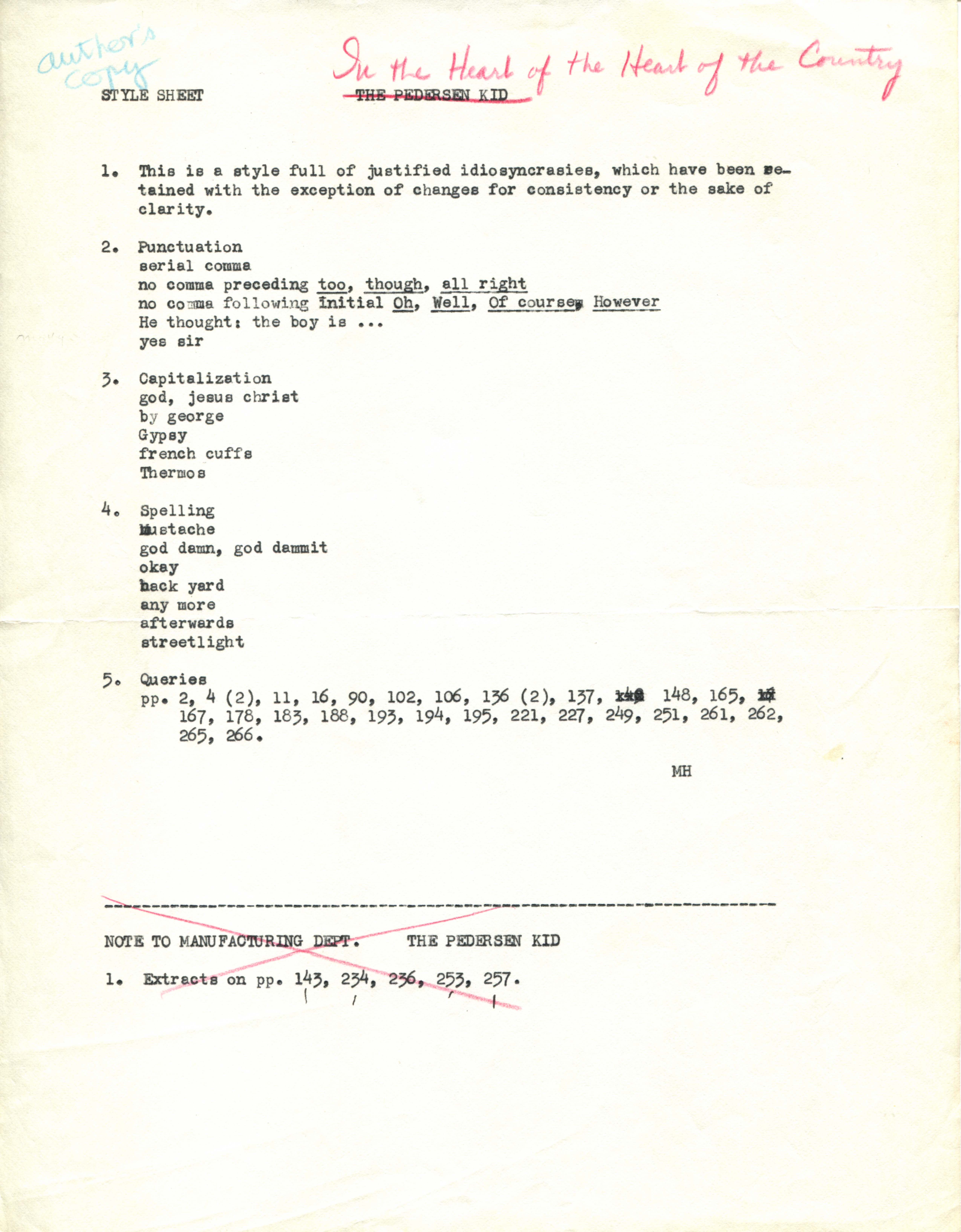 Printer's final copy of In the Heart of the Heart of the Country, July 6, 1967