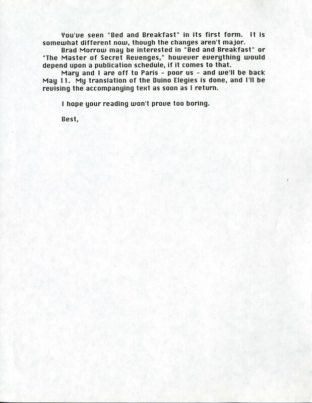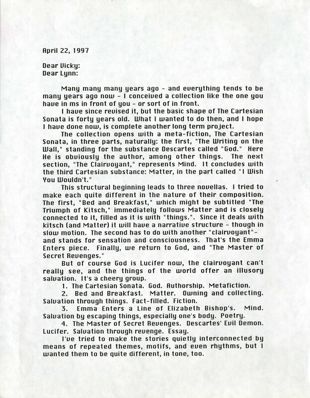 Gass, William H. 1997. “‘A Master of Sweet Revenges’ - Letter and Title Page.”, William H. Gass: The Soul Inside the Sentence, accessed February 11, 2026, https://digitalexhibits.library.wustl.edu/s/gass/item/16344
