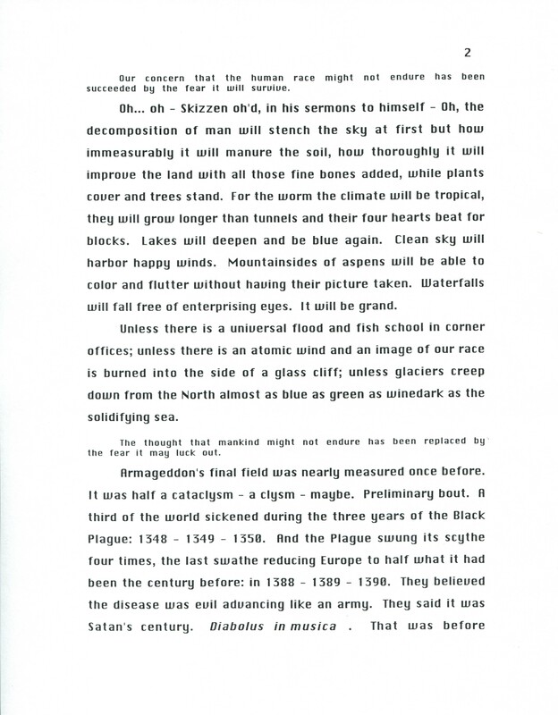 Gass, William H. 2001. “‘The Apocalypse Museum’ - Printout Draft”. Conjunctions, William H. Gass: The Soul Inside the Sentence, accessed February 11, 2026, https://digitalexhibits.library.wustl.edu/s/gass/item/16346