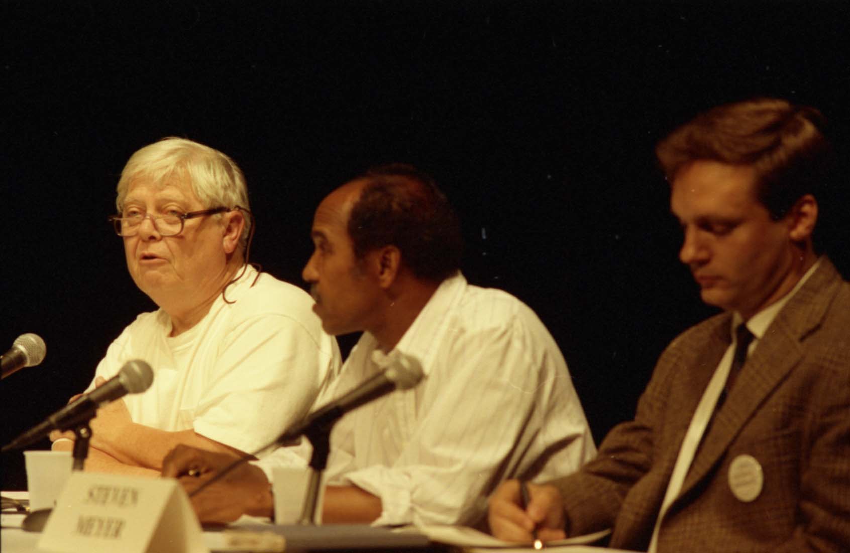William Gass, Nuruddin Farah, and Steven Meyer at the Writer in Politics Conference