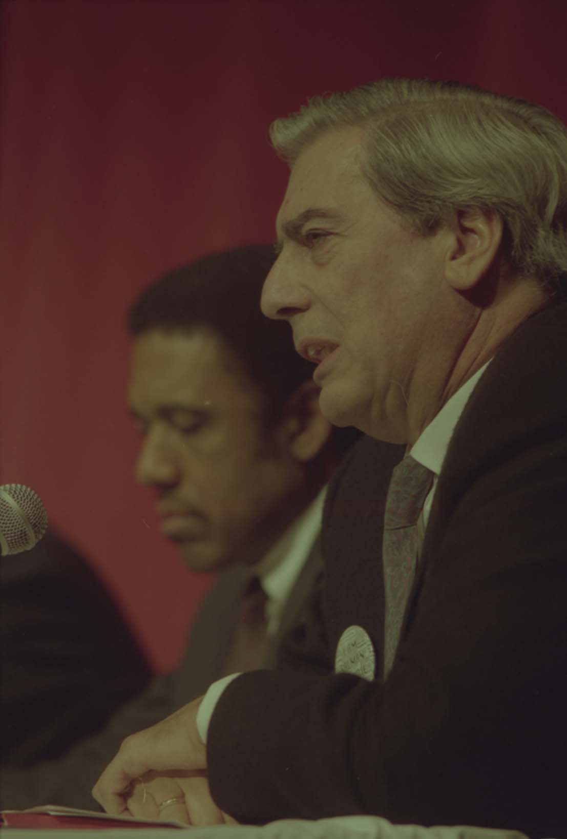 Washington University Photographic Services. 1992. “James McLeod and Mario Vargas Llosa at the Writer in Politics Conference.”, William H. Gass: The Soul Inside the Sentence, accessed February 11, 2026, https://digitalexhibits.library.wustl.edu/s/gass/item/38100