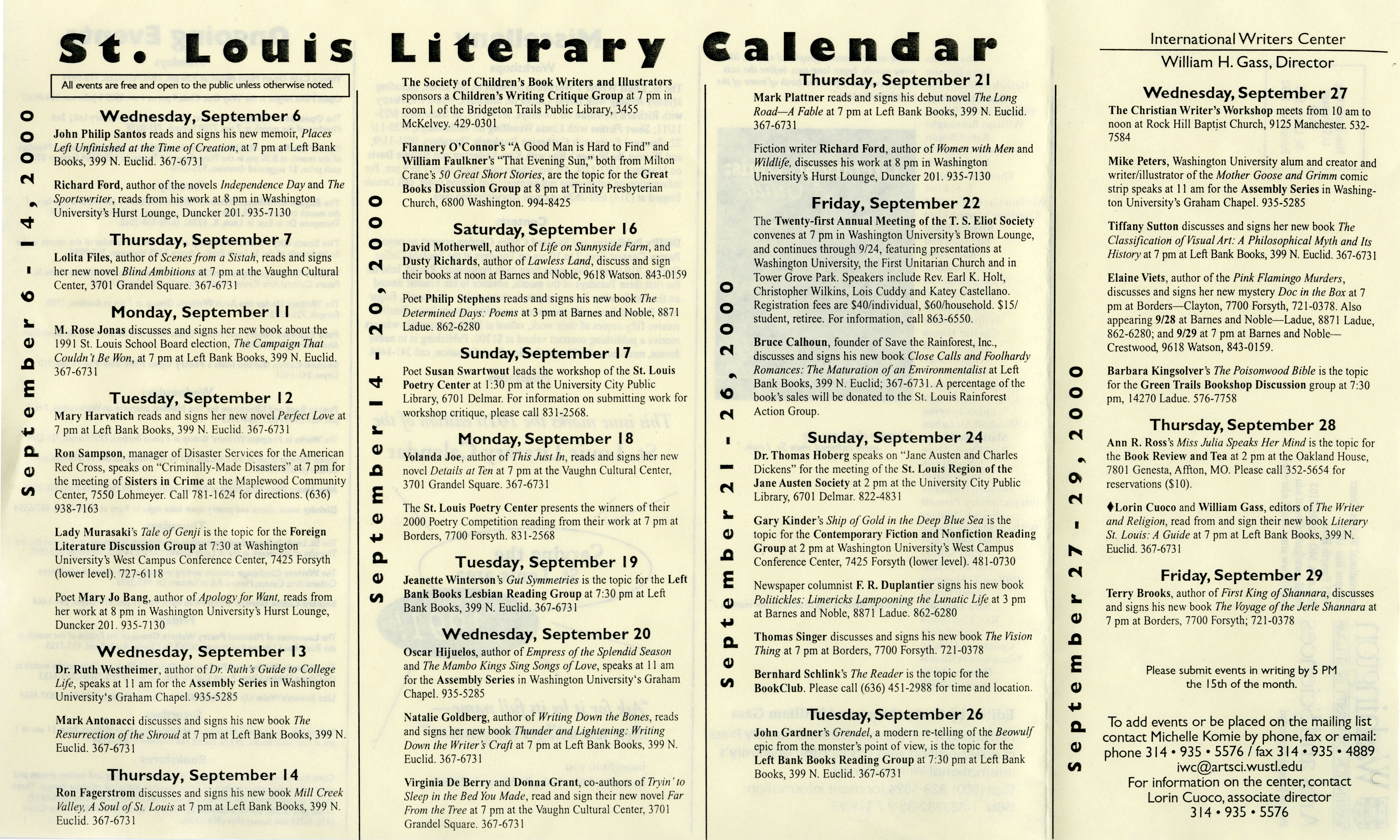 “St. Louis Literary Calendar”. 2000, William H. Gass: The Soul Inside the Sentence, accessed February 10, 2026, https://digitalexhibits.library.wustl.edu/s/gass/item/38745