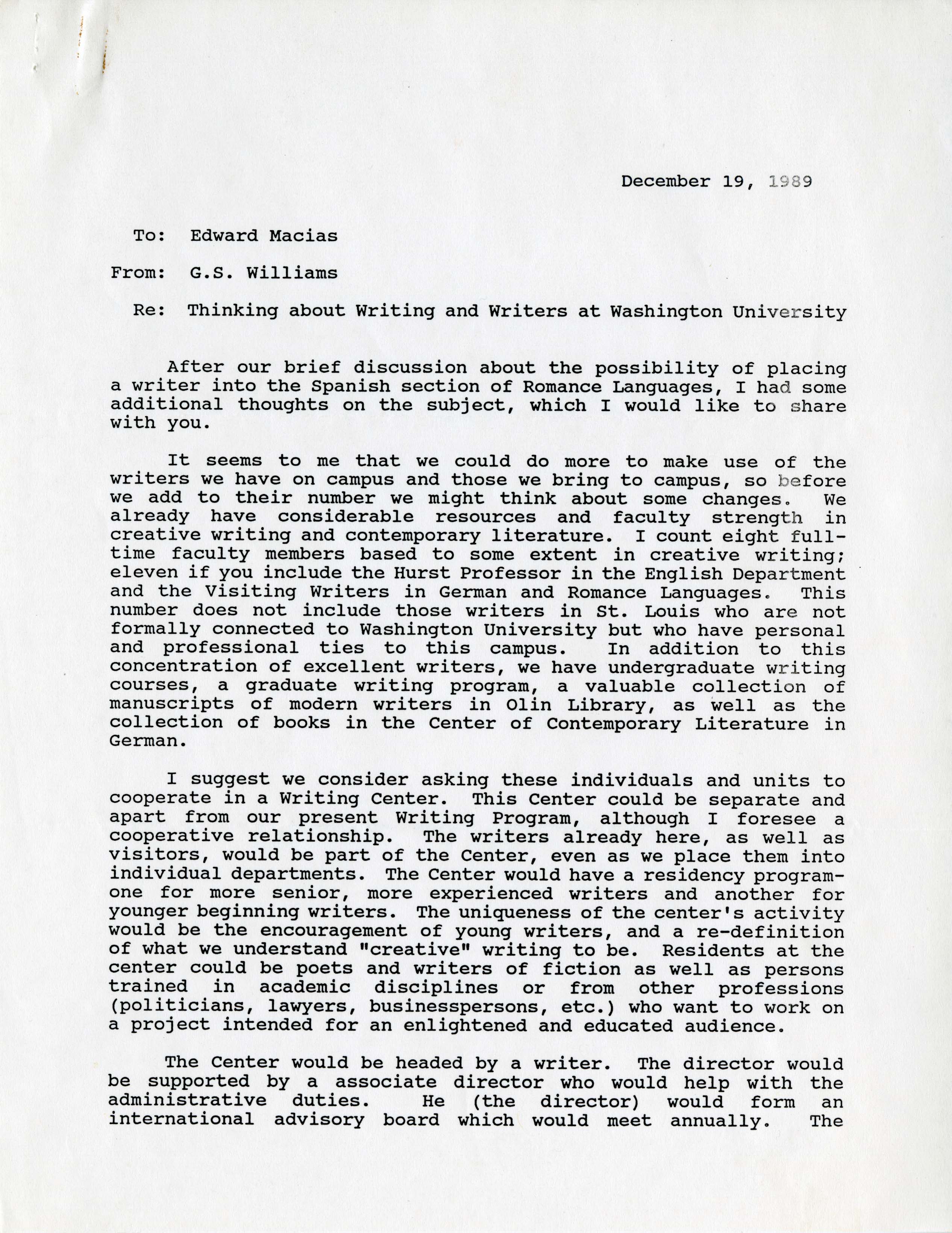 Letter from Gerhild Williams to Ed Macias, December 19, 1989