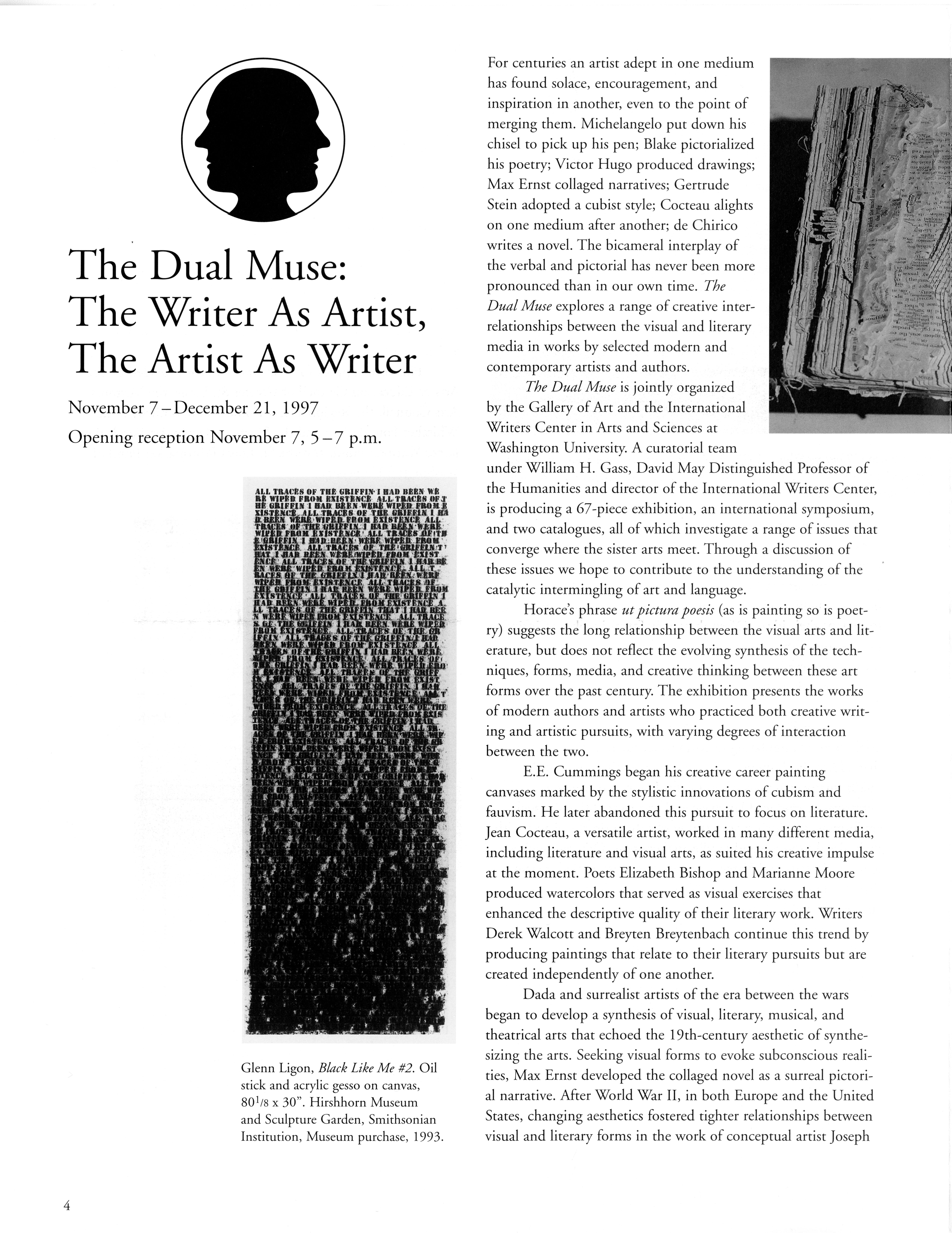 “Washington University Gallery of Art Fall 1997 Bulletin”. 1997. Washington University St. Louis, William H. Gass: The Soul Inside the Sentence, accessed February 11, 2026, https://digitalexhibits.library.wustl.edu/s/gass/item/38981