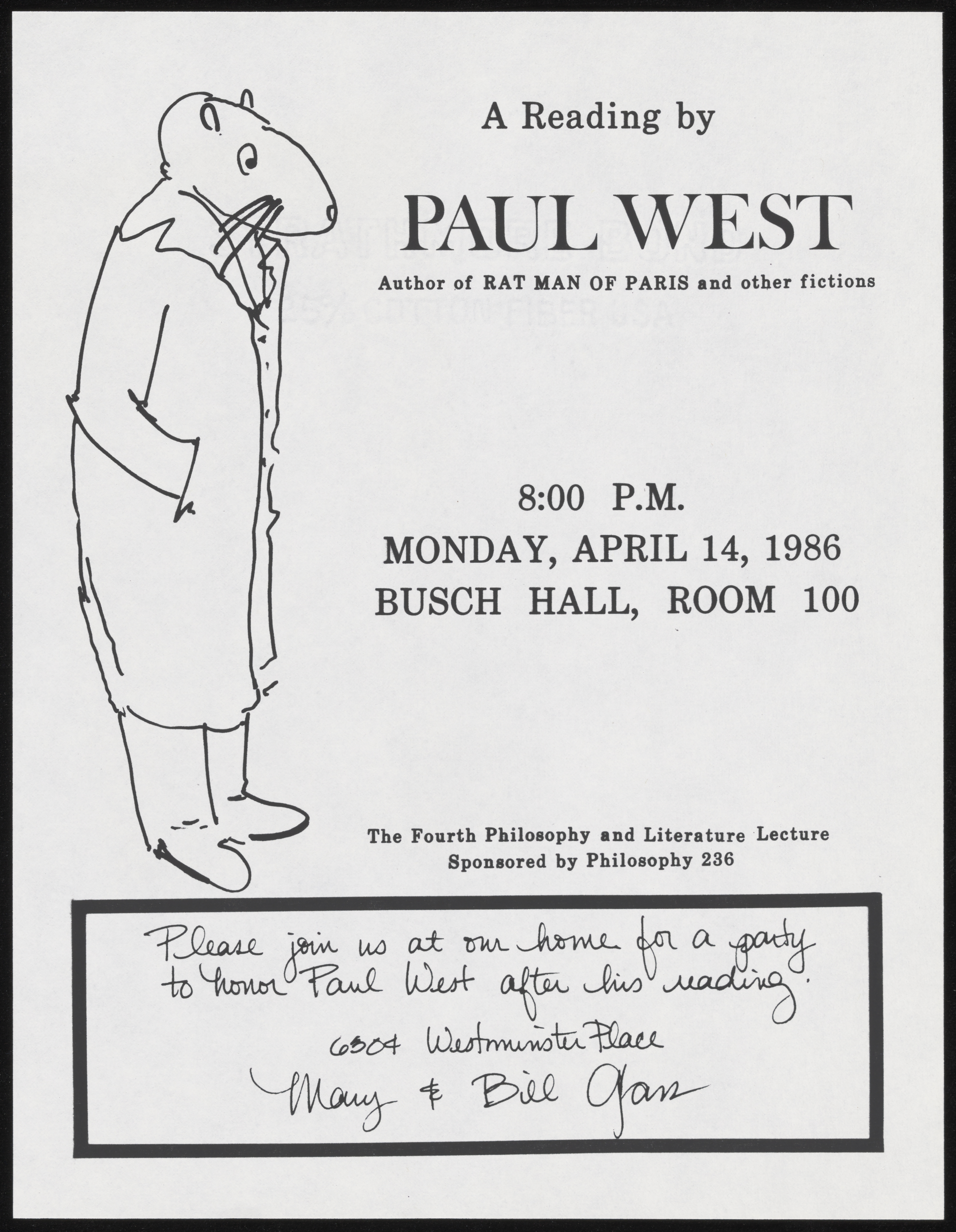Gass, Mary. 1986. A Reading by Paul West, William H. Gass: The Soul Inside the Sentence, accessed February 11, 2026, https://digitalexhibits.library.wustl.edu/s/gass/item/57376