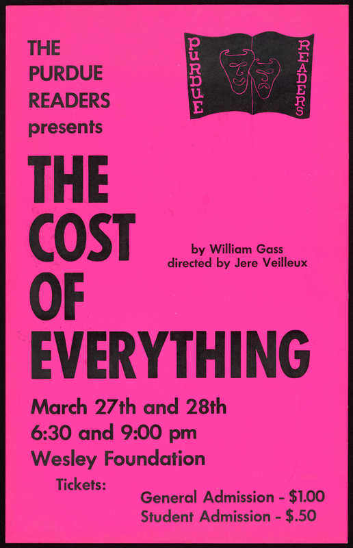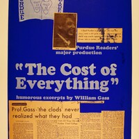 Purdue Readers. 1972. “The Cost of Everything” Poster. Gass Reading "The Cost of Everything". Purdue Readers, William H. Gass: The Soul Inside the Sentence, accessed February 11, 2026, https://digitalexhibits.library.wustl.edu/s/gass/item/57382