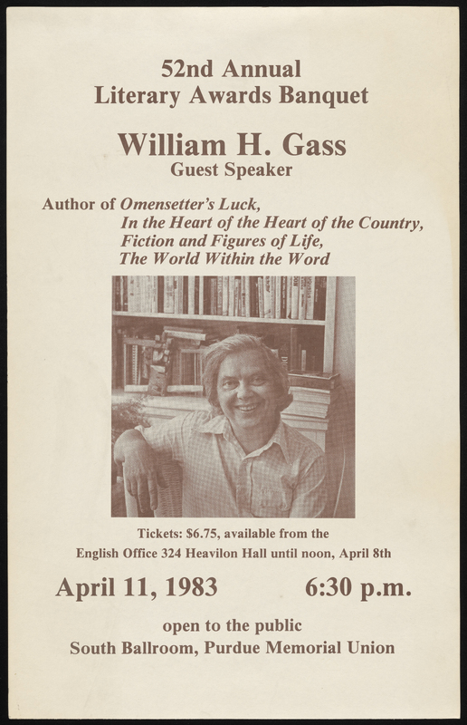 “52nd Annual Literary Awards Banquet”. 1983. Purdue University, William H. Gass: The Soul Inside the Sentence, accessed February 11, 2026, https://digitalexhibits.library.wustl.edu/s/gass/item/57391