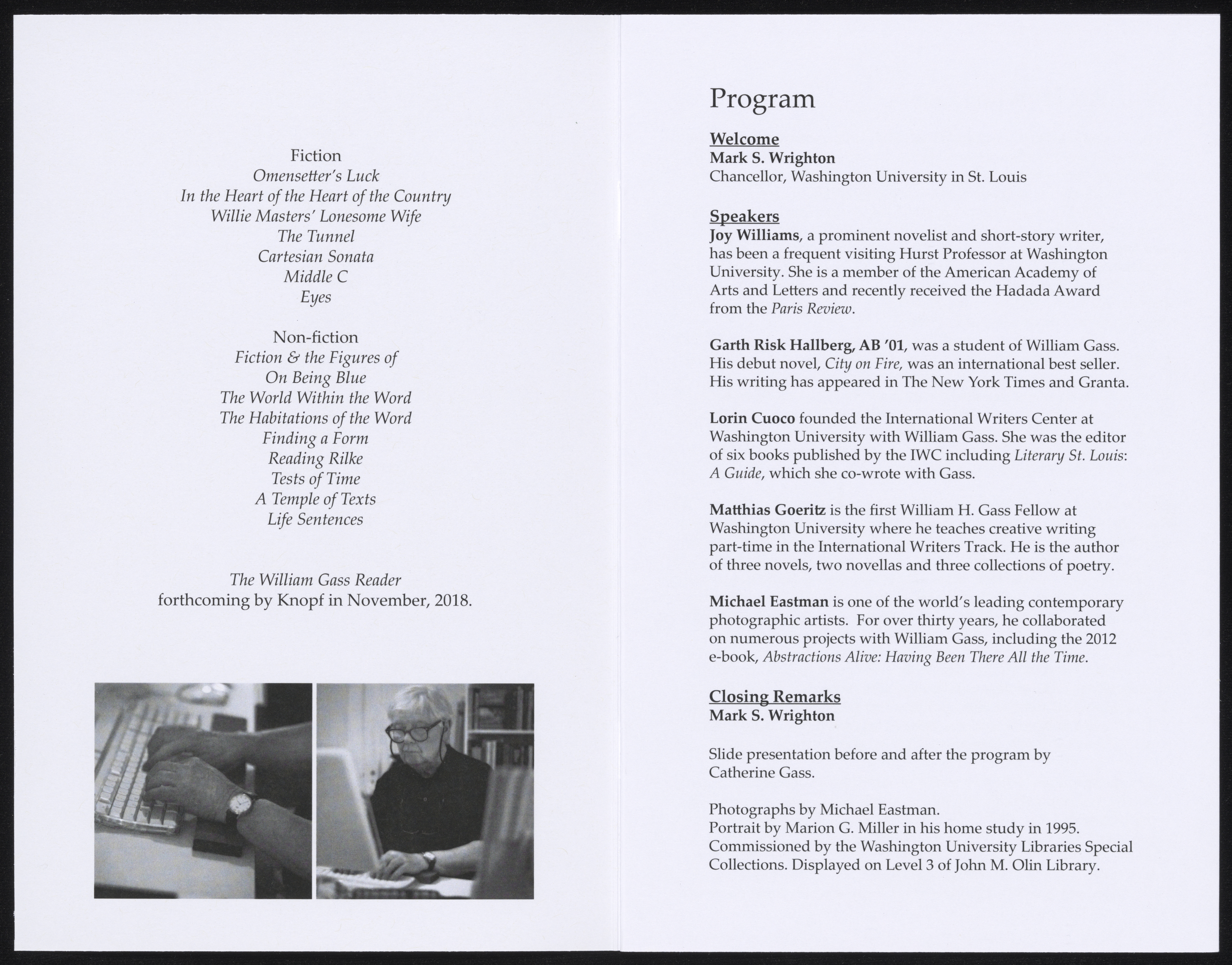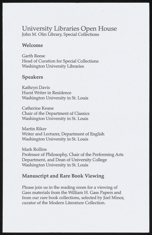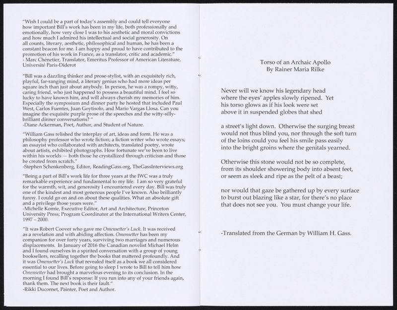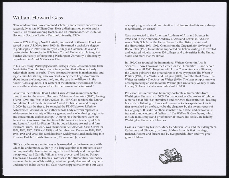 Washington University. 2018. William H. Gass: His Life and Legacy. Video Playlist. Washington University, William H. Gass: The Soul Inside the Sentence, accessed February 11, 2026, https://digitalexhibits.library.wustl.edu/s/gass/item/57400