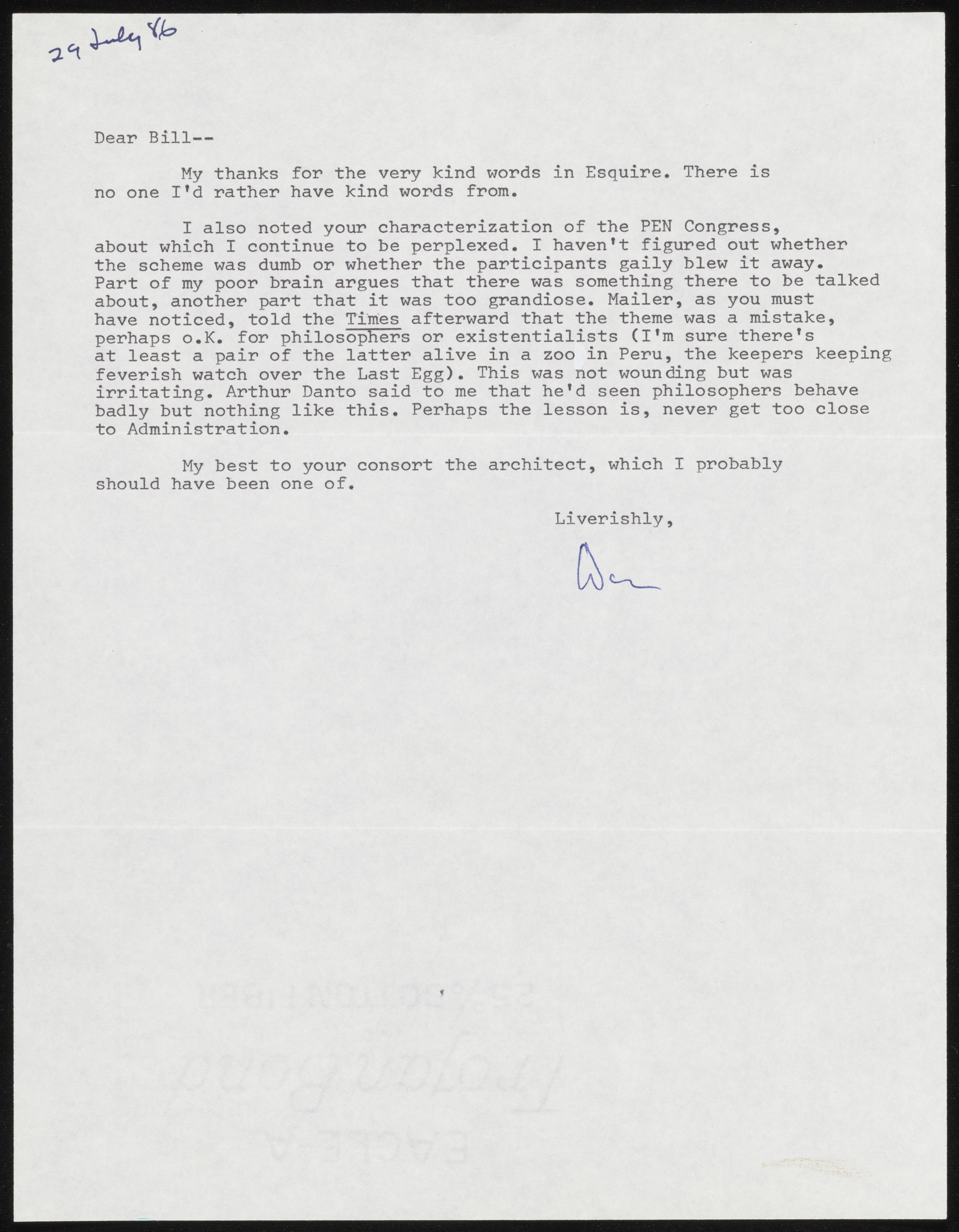 Barthelme, Donald. 1986. Don Barthelme to William H. Gass. William H. Gass at PEN International Congress, William H. Gass: The Soul Inside the Sentence, accessed March 5, 2026, https://digitalexhibits.library.wustl.edu/s/gass/item/57544