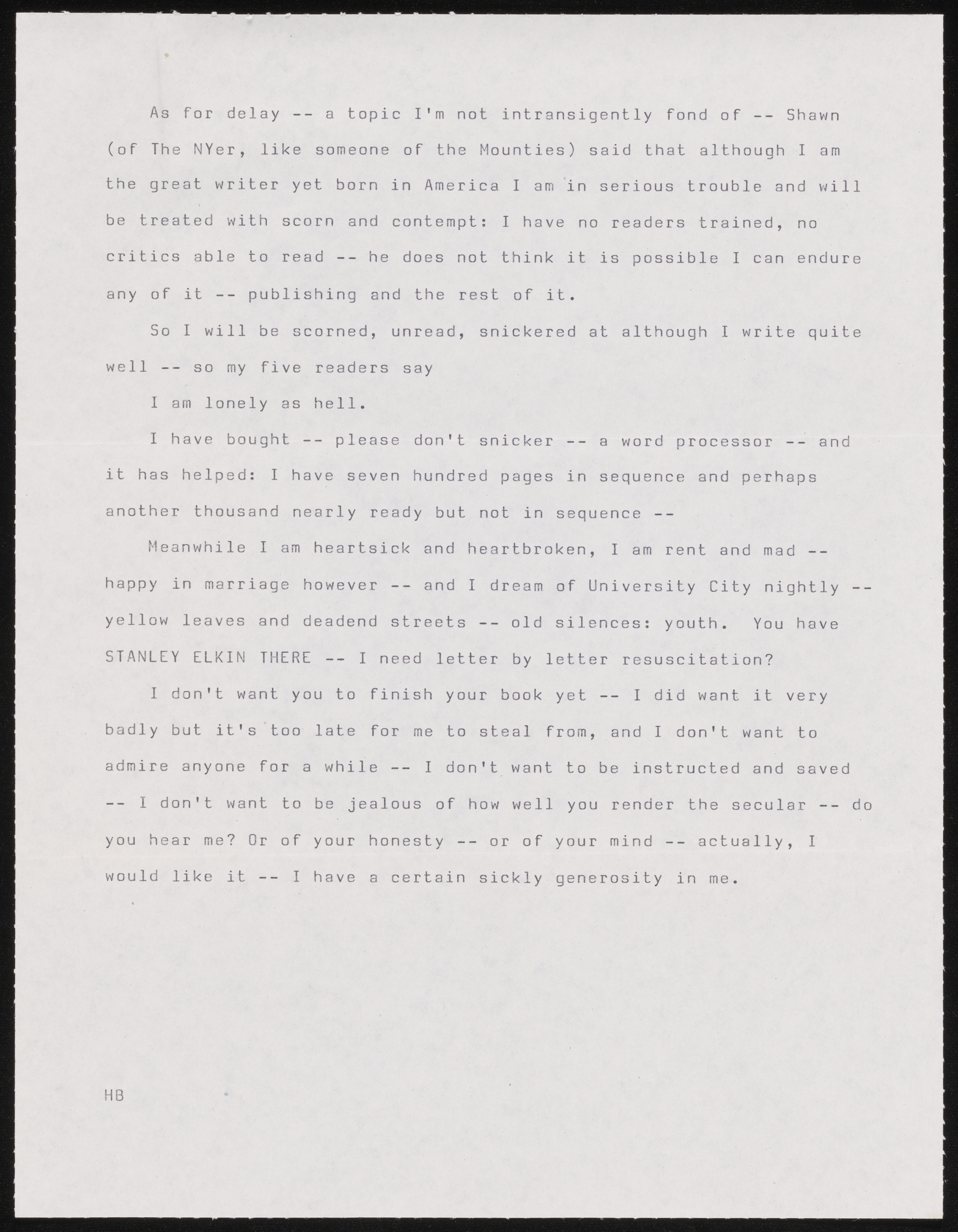 Harold Brodkey to William H. Gass