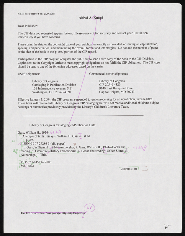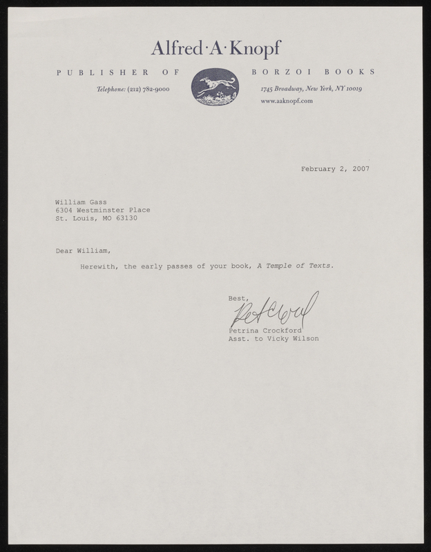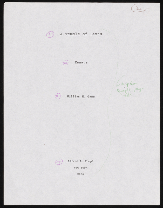 Gass, William H., and Knopf. 2007. A Temple of Texts – Proof. Nonfiction Books: A Temple of Texts. Knopf, William H. Gass: The Soul Inside the Sentence, accessed February 11, 2026, https://digitalexhibits.library.wustl.edu/s/gass/item/57575