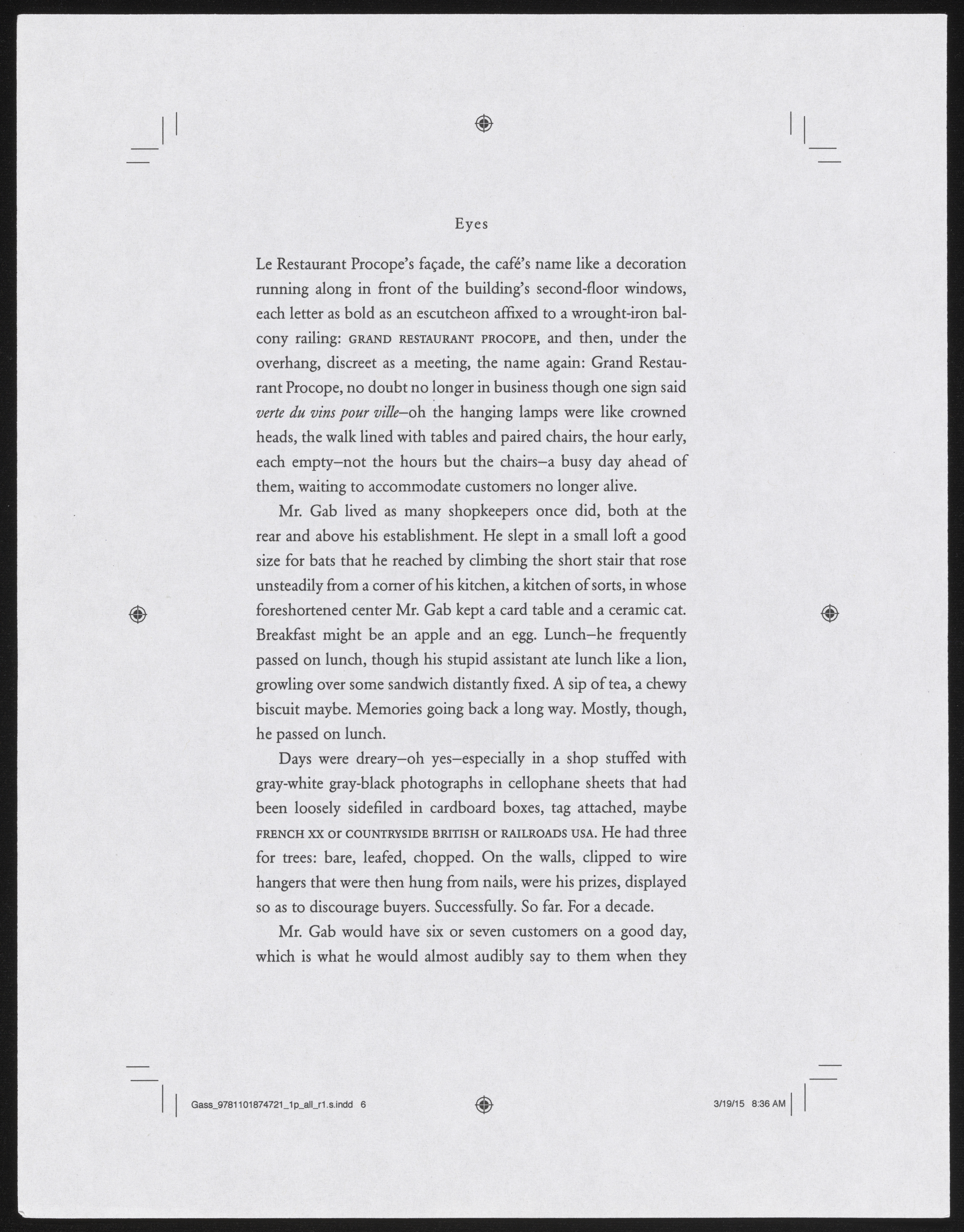 Knopf, and Gass, William H. 2015. Eyes Proof - In Camera. "The Man Who Spoke With His Hands". Knopf, William H. Gass: The Soul Inside the Sentence, accessed March 26, 2026, https://digitalexhibits.library.wustl.edu/s/gass/item/57609