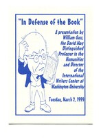 "In Defense of the Book" Invitation An invitation to the "In Defense of the Book" presentation by William H. Gass at the Washington University Houston Club. -