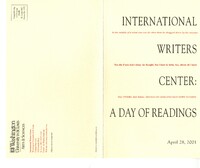 Program for International Writers Center: A Day of Readings, April 28, 2001 Program for International Writers Center: A Day of Readings, April 28, 2001. The last program under Gass’ directorship of the International Writers Center featuring Algerian novelist Assia Djebar, German writer Ingo Schulze, British poet and novelist Lavinia Greenlaw/ -