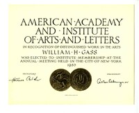 American Academy and Institute of Arts and Letters induction certificate, May 18, 1983 American Academy and Institute of Arts and Letters induction certificate, May 18, 1983. -