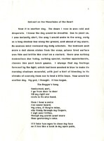 "Outcast on the Mountains of the Heart" Draft Pages Eight pages from a printout draft of "Outcast on the Mountains of the Heart," an excerpt from The Tunnel. The complete draft is 13 pages. -