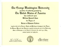 George Washington University Doctor of Humane Letters and Citation, May 8, 1982 George Washington University Doctor of Humane Letters and Citation, May 8, 1982. -