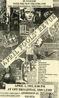 International Writers Center event poster for April Fool's Revue International Writers Center event poster advertising "April Fool's Revue, an evening of Humorous Literature." -