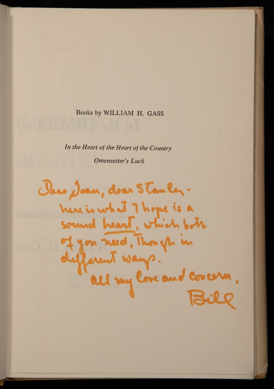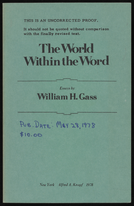 Uncorrected proofs, an inscribed first edition, and journals with uncollected work by Gass are among the many publications we have acquired in recent years.
