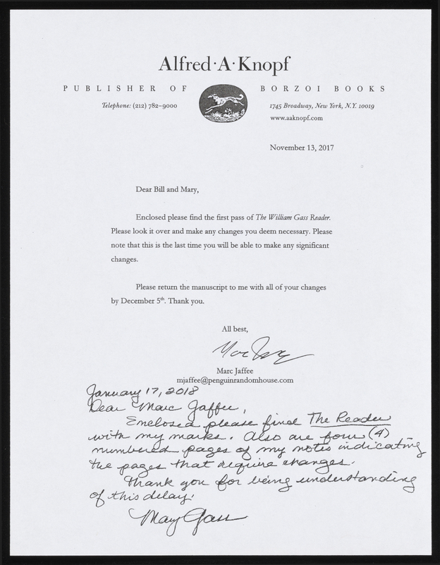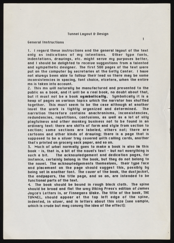 This section includes what we commonly refer to as "materials toward books"--typescripts, proofs, editorial correspondence, etc.--as well as a first for the William H. Gass Papers: one of his typewriters.