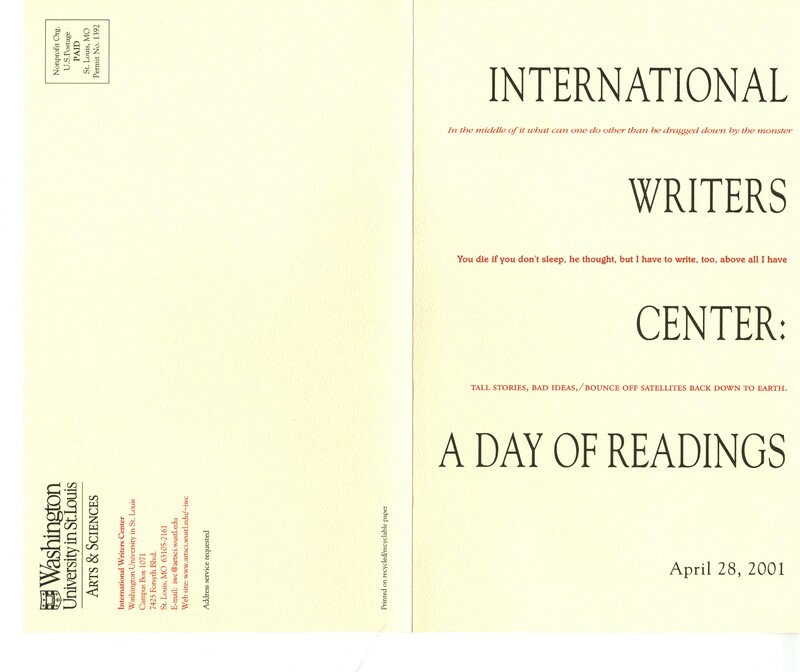 Program for International Writers Center: A Day of Readings, April 28, 2001