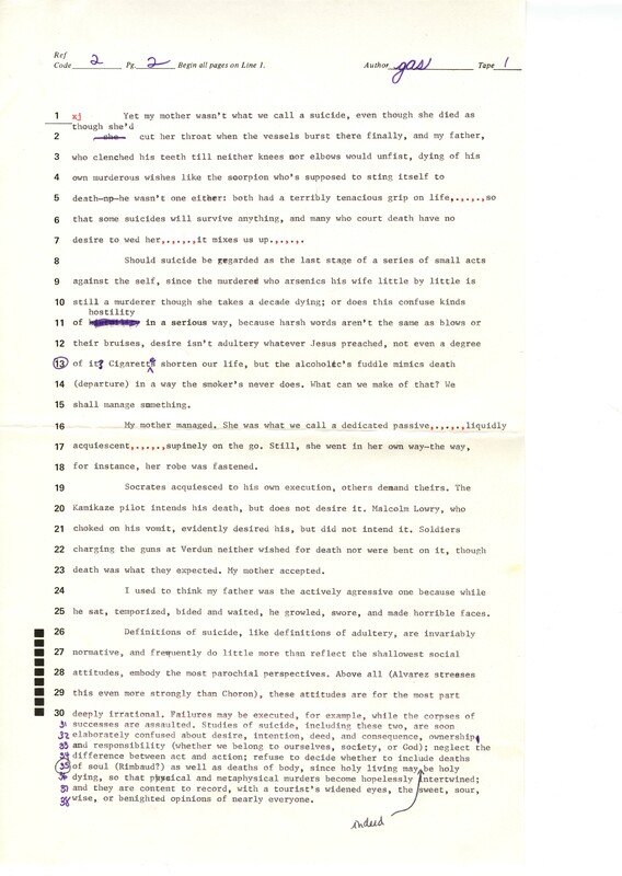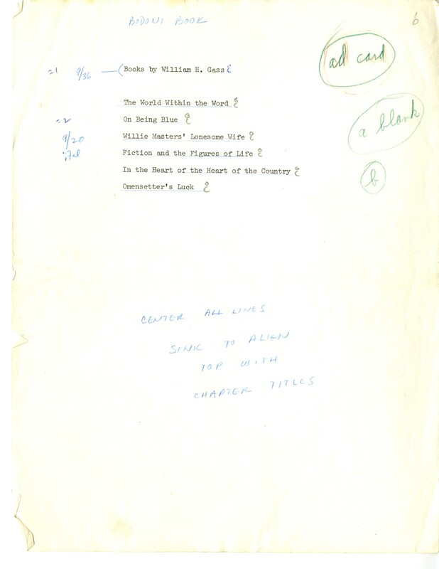 Numerous drafts of essays that went into The World Within the Word are included in the William H. Gass Papers, as well as a setting copy of the entire book created by the publisher, Alfred A. Knopf.