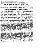 Boycott in China Starting with the Chinese Exclusion Act of 1882, a series of federal U.S. laws banned Chinese laborers from immigrating, and it made it illegal for Chinese nationals already in America to become naturalized citizens. Chinese immigrants had to register with immigration authorities and carry a Certificate of Residence with them, without which they could face deportation. The Exclusion laws not only impacted Chinese artisans here for the Fair but also the Chinese communities living in the heartland of America. -