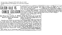 "Golden Rule vs. Chinese Exclusion" Starting with the Chinese Exclusion Act of 1882, a series of federal U.S. laws banned Chinese laborers from immigrating, and it made it illegal for Chinese nationals already in America to become naturalized citizens. Chinese immigrants had to register with immigration authorities and carry a Certificate of Residence with them, without which they could face deportation. The Exclusion laws not only impacted Chinese artisans here for the Fair but also the Chinese communities living in the heartland of America. -