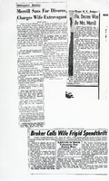 Newspaper clippings related to Charles Merrill's and Hellen Ingram Merrill's divorce Newspaper clippings related to Charles Merrill's and Hellen Ingram Merrill's divorce. The "broken home" had a profound effect on James Merrill remembering his childhood as a lonely one.