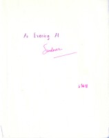 An Evening at Sandover Draft Fifteen pages (out of sixty total) of a corrected typescript draft of An Evening at Sandover, Merrill's first stage adaptation of the Ouija board epic, performed as part of the revived Poets' Theatre at Hasty Pudding theater at Harvard. Peter Hooten worked with Merrill on both a stage and video adaptation, to very mixed results.