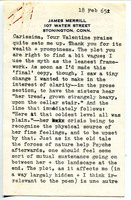 James Merrill letter to Irma Brandeis James Merrill letter to Irma Brandeis explaining Psyche's realization in "From the Cupola," the drafts of which he had been sending to her (see also "From the Cupola" draft page).