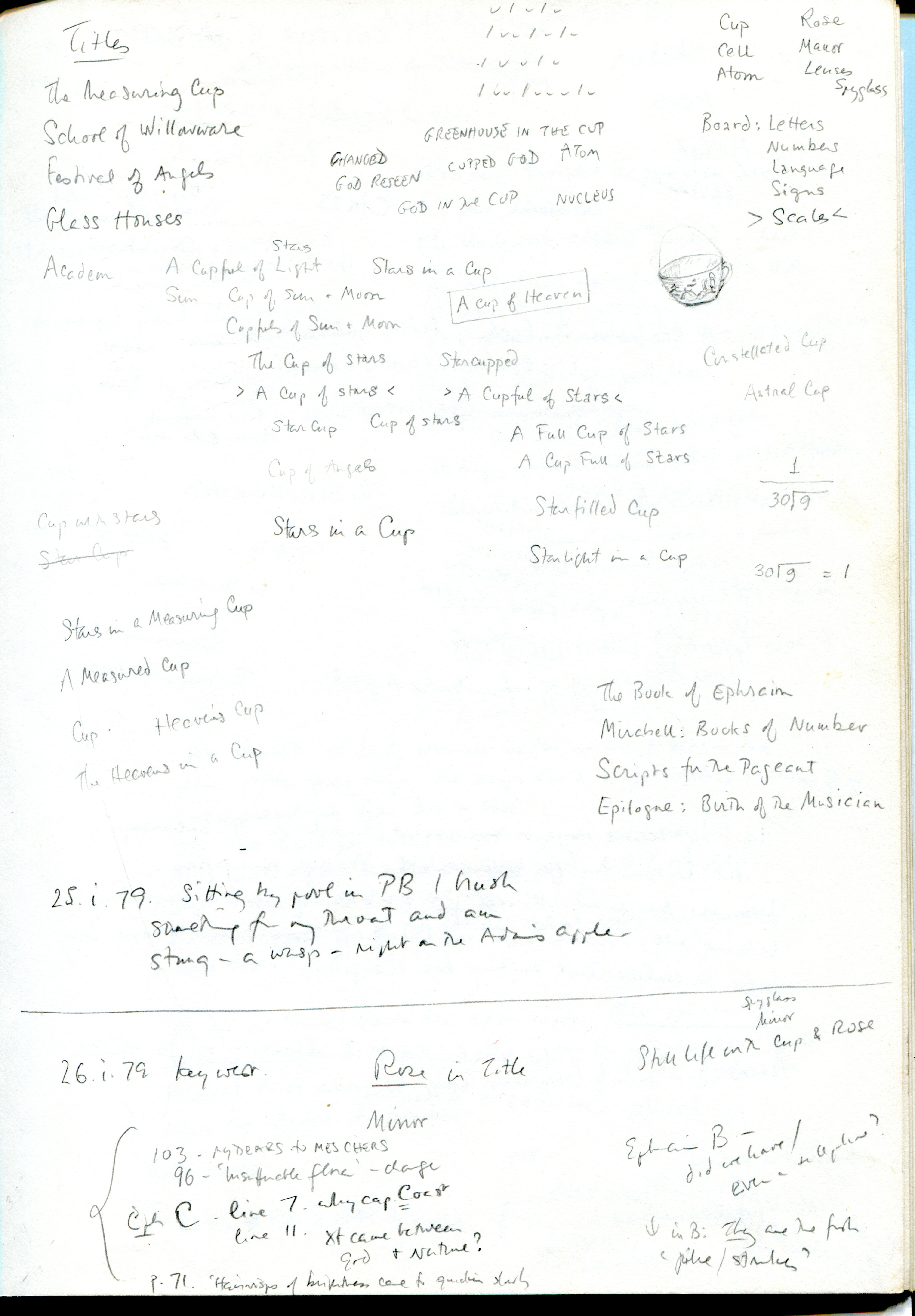 Merrill, James. 1979. “Journal 14 - Notes on Title for The Changing Light at Sandover”. Series_II_Journals, James Merrill: Life and Archive, accessed February 11, 2026, https://digitalexhibits.library.wustl.edu/s/james-merrill-life-and-archive/item/38405