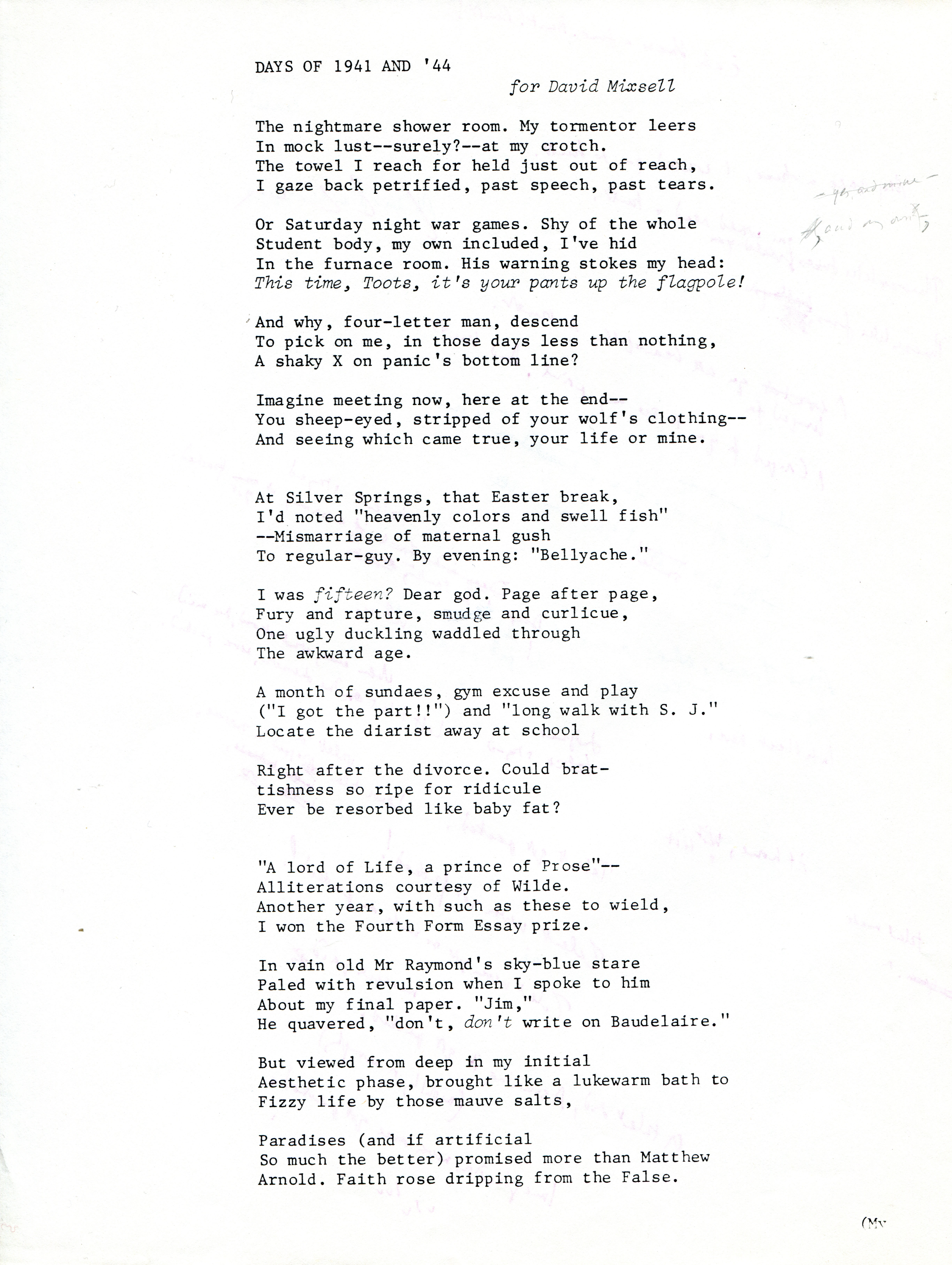 Merrill, James. 1980. “‘Days of 1941 and ’44’ Draft”. James Merrill Papers - Series_IV_Manuscripts, James Merrill: Life and Archive, accessed February 11, 2026, https://digitalexhibits.library.wustl.edu/s/james-merrill-life-and-archive/item/38414