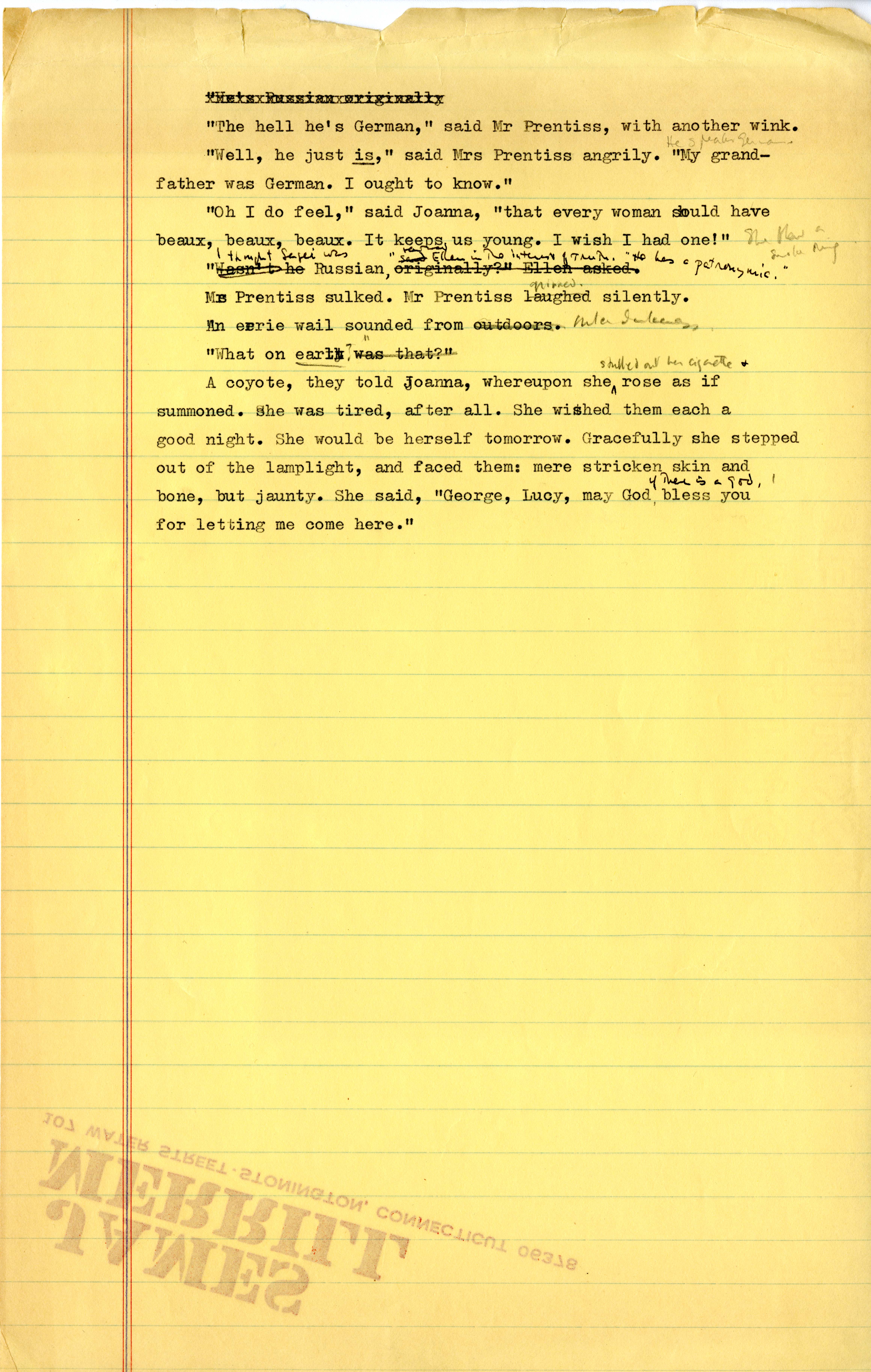 - See also Merrill's November 27, 1973 letter to Tony Parigory and draft of "The Will."