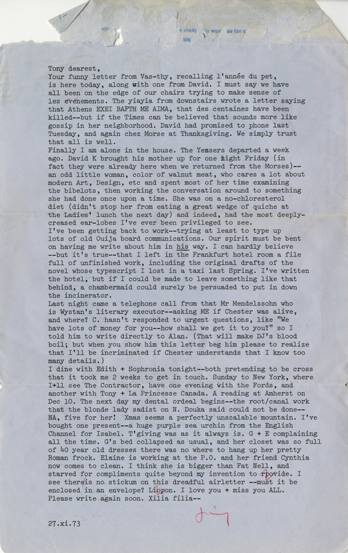 James Merrill letter to Tony Parigory