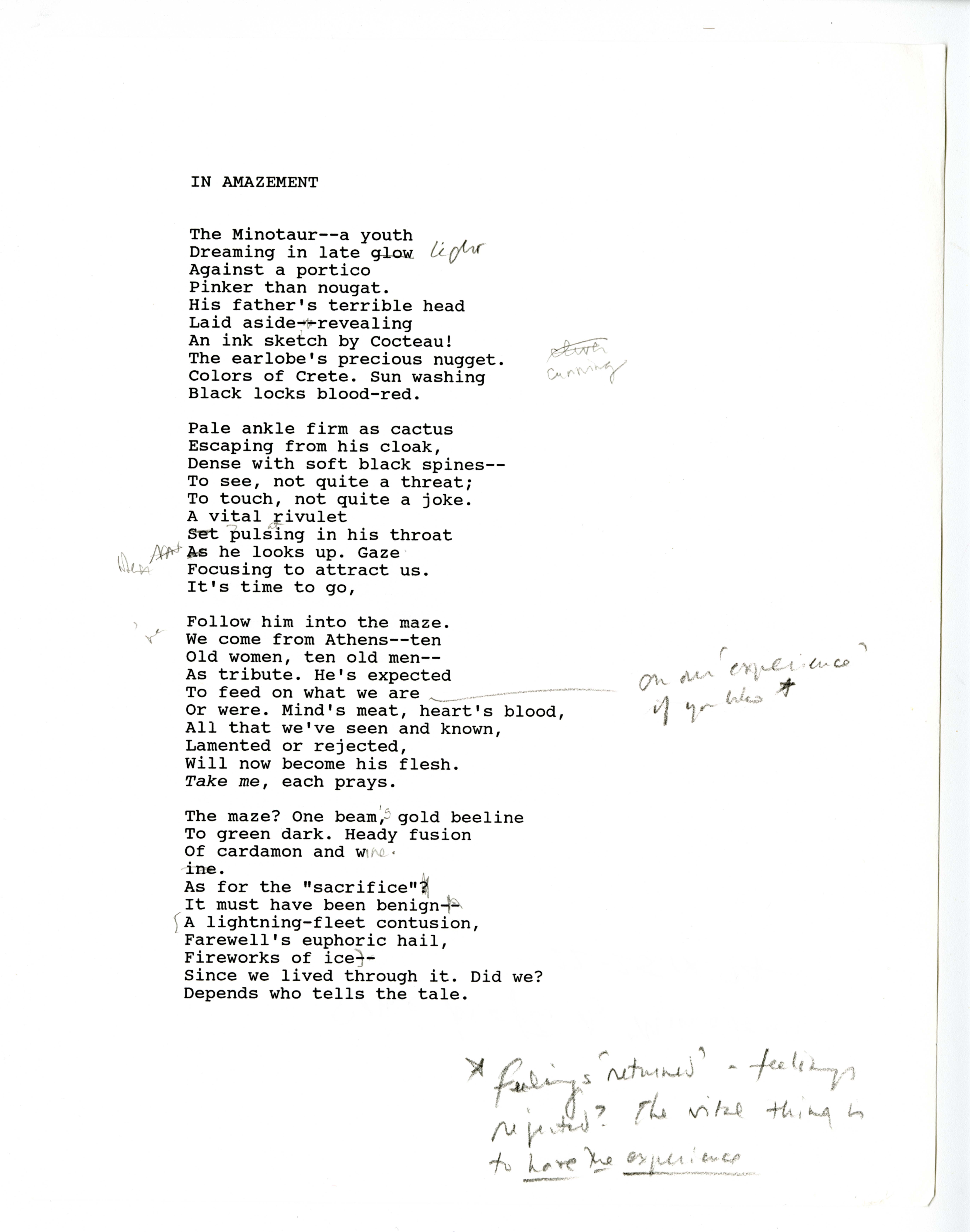 - Manuscripts of "In Amazement" and "Minotaur"