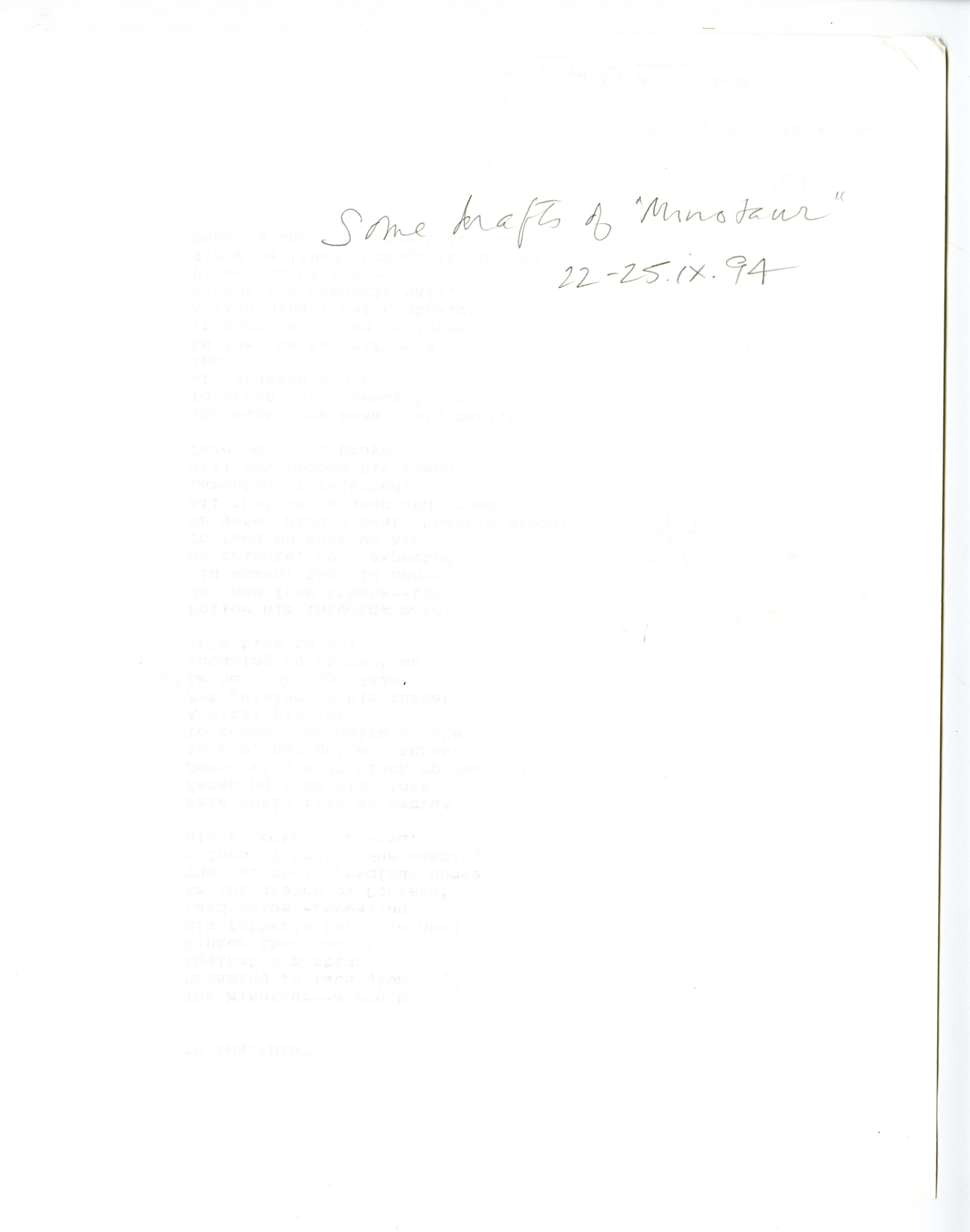 - 5 Verso) IN AMAZEMENT. In pencil: "Some drafts of 'Minotaur' 22 -25. ix. 94."