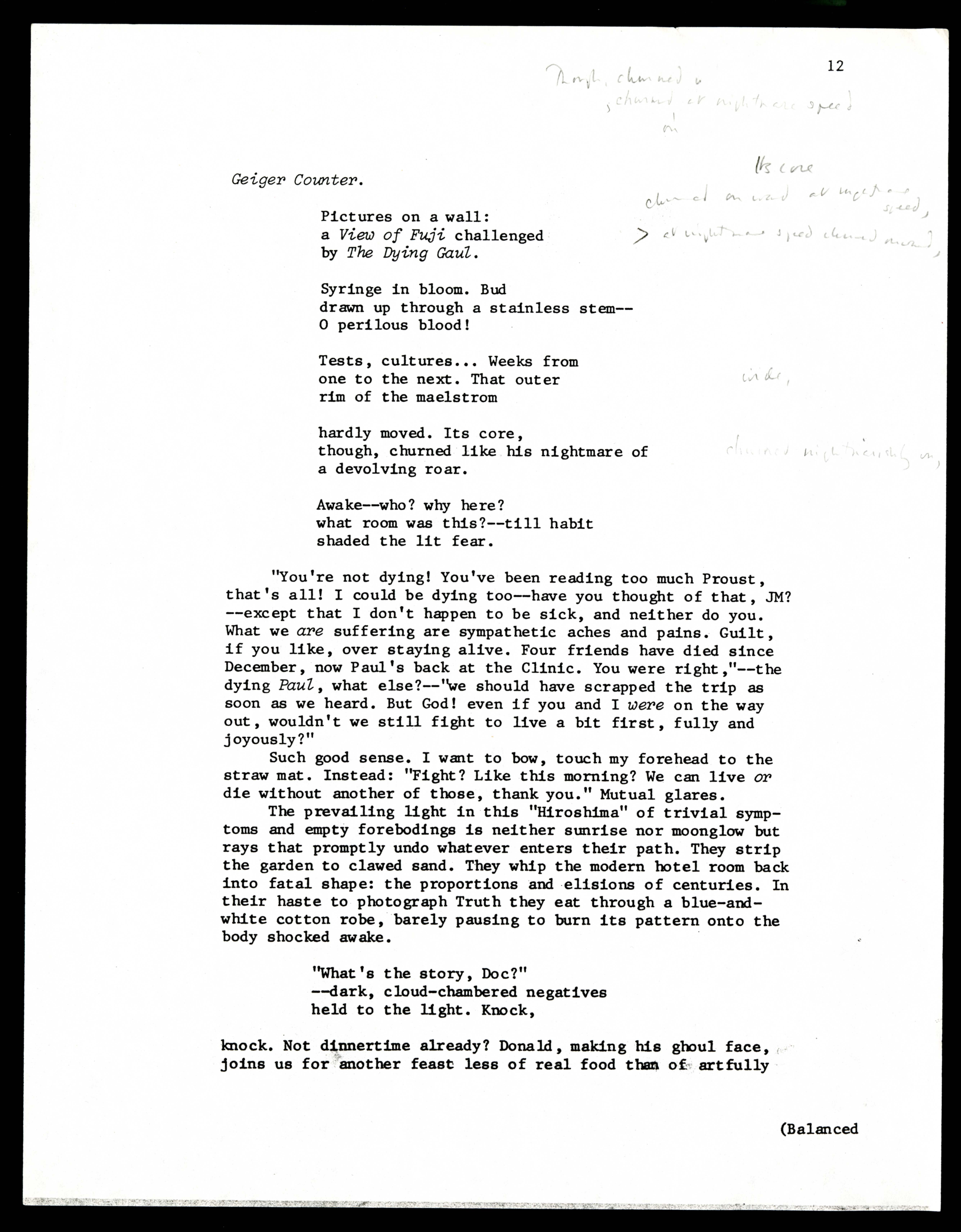 - 1 Verso) Page from Merrill's "Prose of Departure." Additions in pencil.