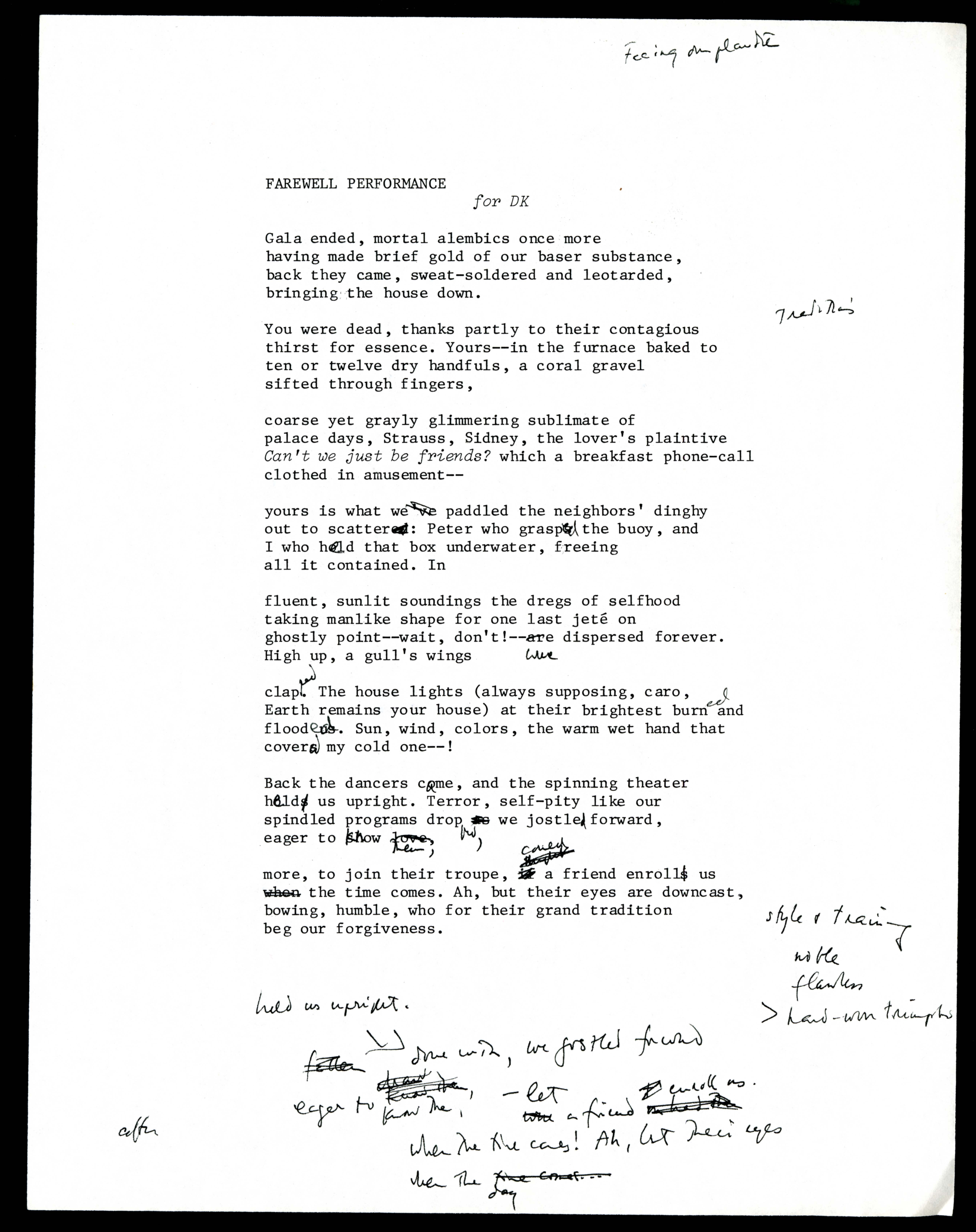 “15) ‘FAREWELL PERFORMANCE.’ Revisions in Ink”. n.d, James Merrill's Poetry Manuscripts, accessed March 9, 2026, https://digitalexhibits.library.wustl.edu/s/james-merrill-poetry-manuscripts/item/37654