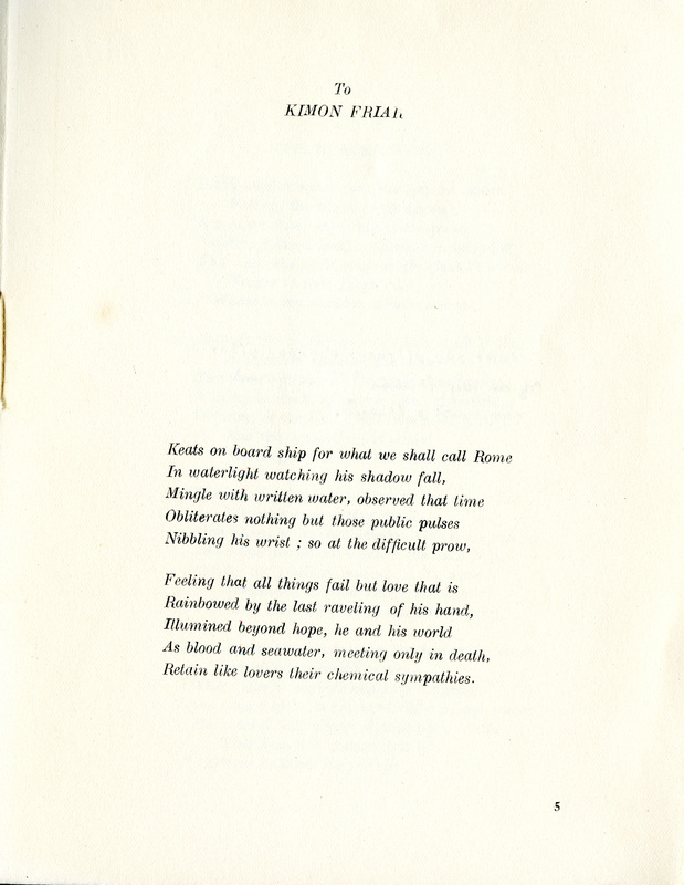 - The Black Swan, Kimon Friar's privately printed book of James Merrill's college poetry, probably at least partially financed by Merrill, himself. This copy inscribed to "Jonnie."