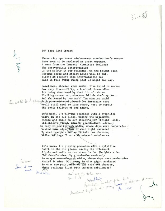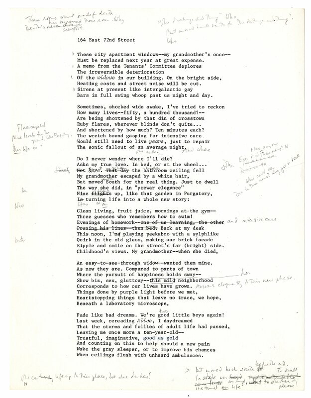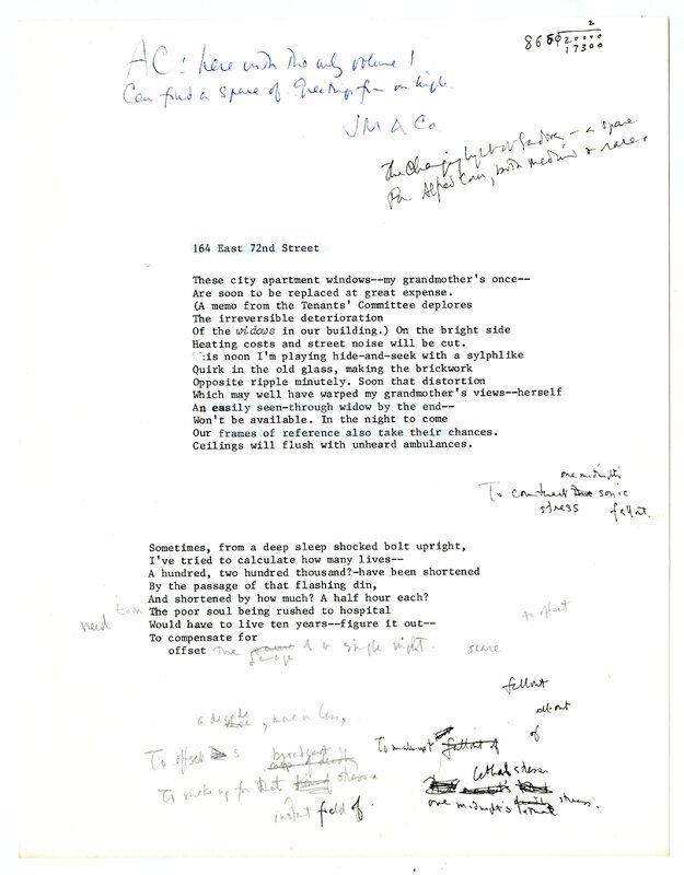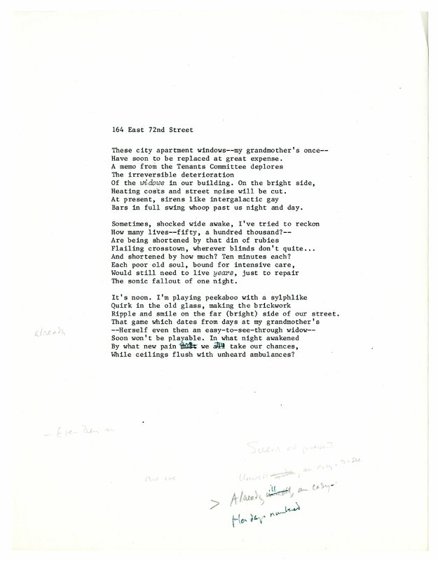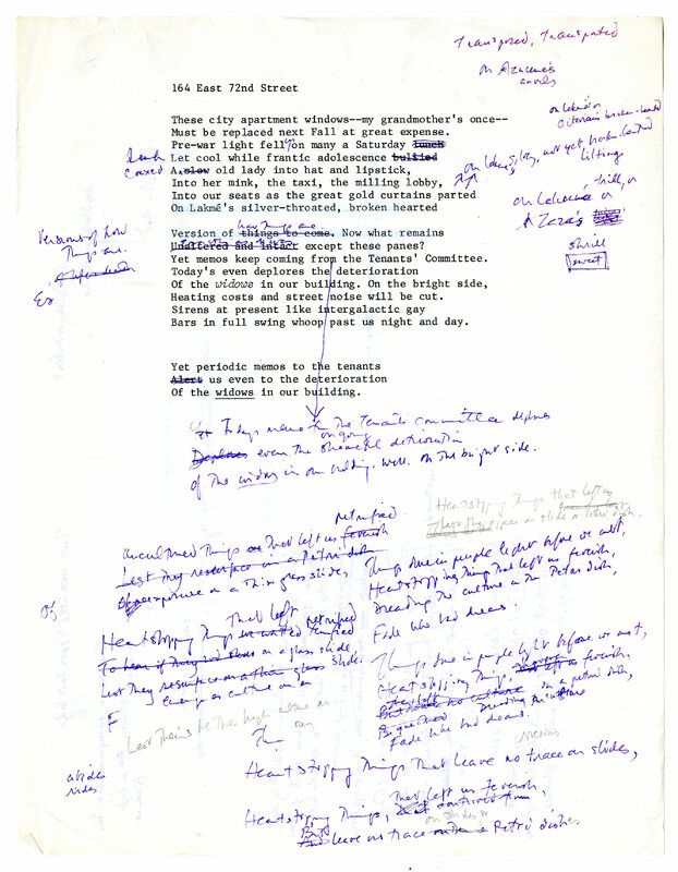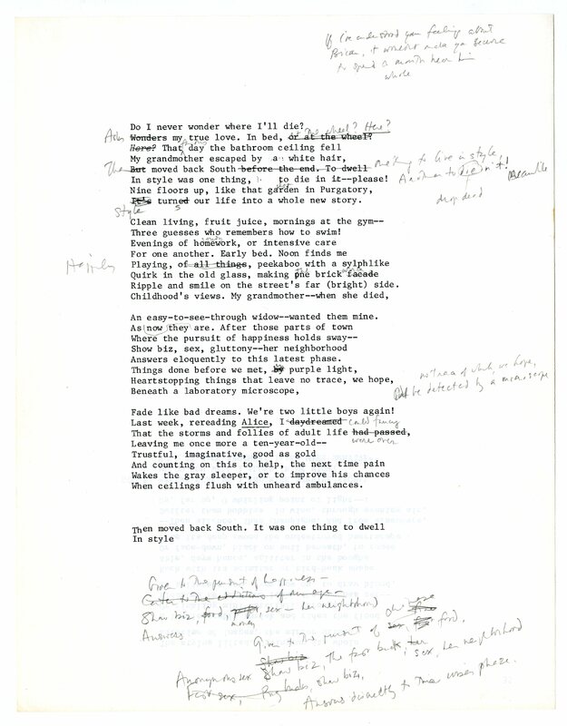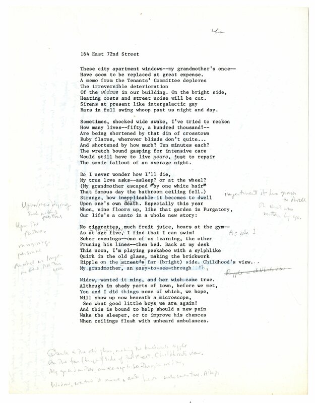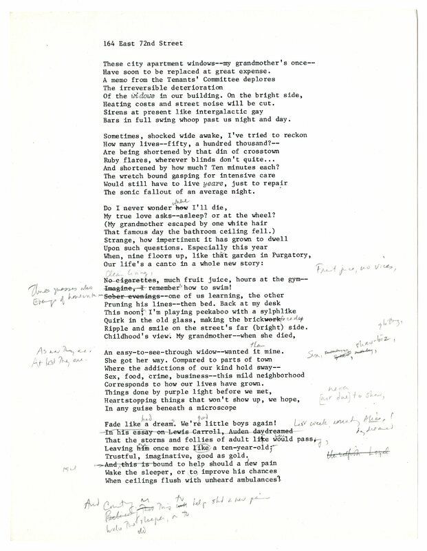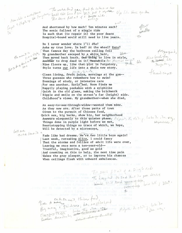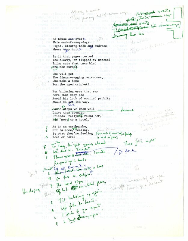 10. "No house can avert[(s] / This end-of-many-days." Draft of Merrill's poem "Pledge," A Scattering of Salts (New York: Knopf, 1995).