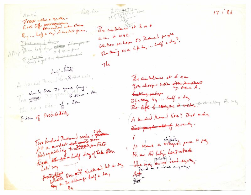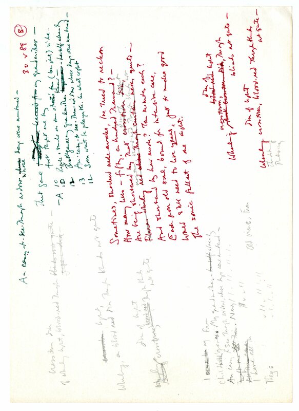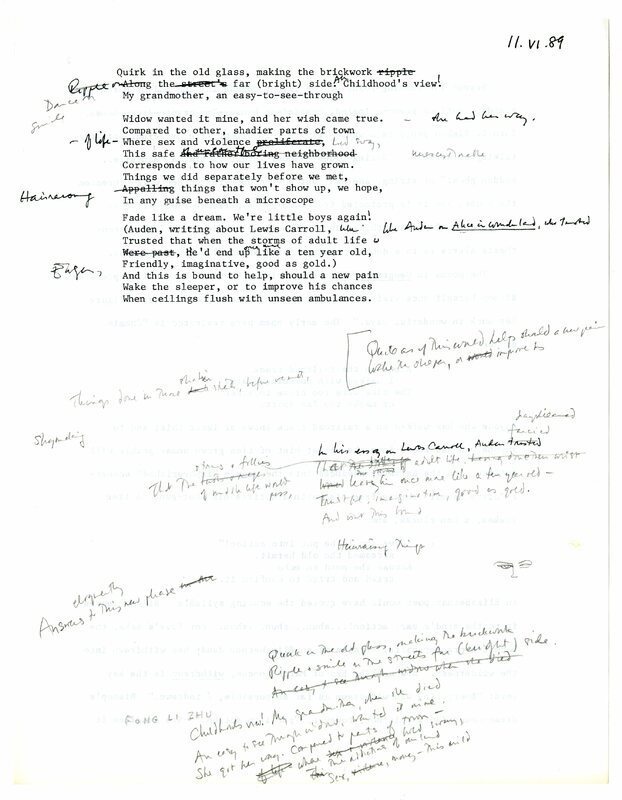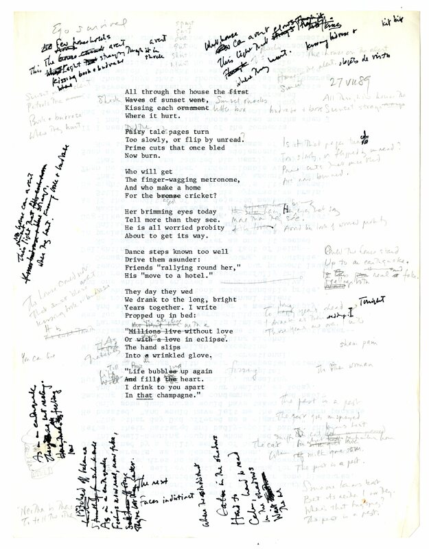 12. "Ego survival No Few households." 27 vii 89. Draft of Merrill's poem "Pledge," A Scattering of Salts (New York: Knopf, 1995).