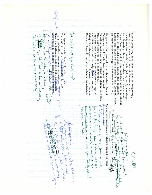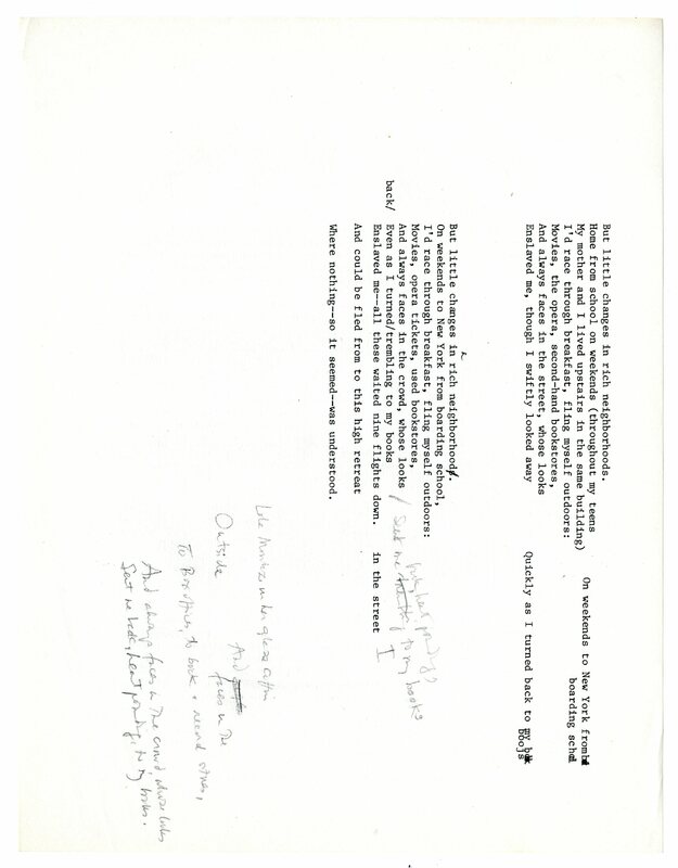 42. Page from Merrill's "Afterword" to David's Kalstone's Becoming a Poet: Elizabeth Bishop with Marianne Moore and Robert Lowell (1989). Verso of 41.