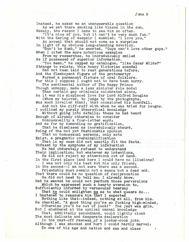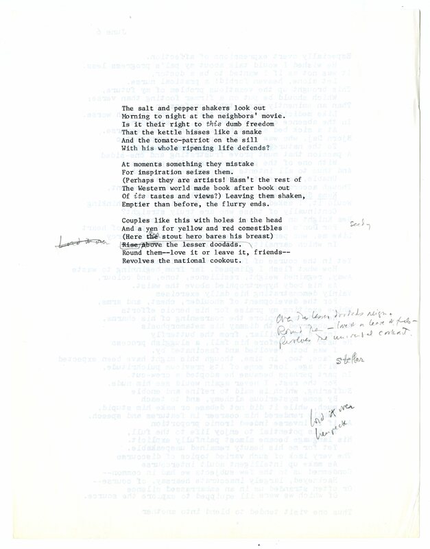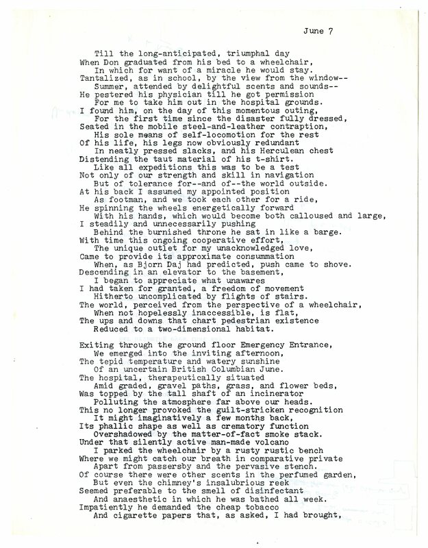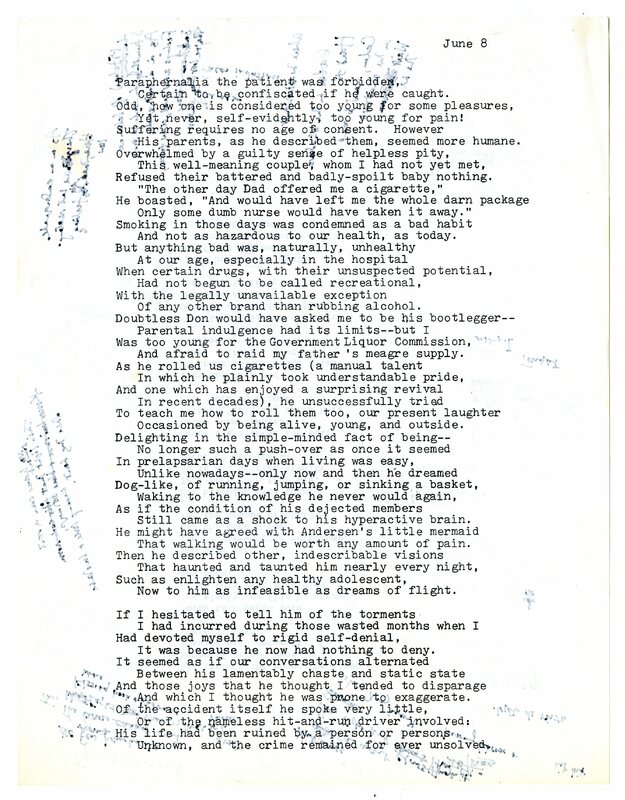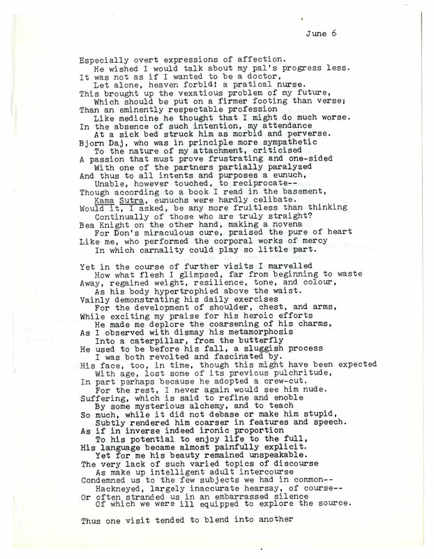59. Page from Daryl Hine, Academic Festival Overture. New York: Atheneum, 1985. June 6. Verso of 58.
