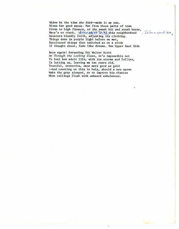 22. Page from Merrill's "Afterword" to David's Kalstone's Becoming a Poet: Elizabeth Bishop with Marianne Moore and Robert Lowell (1989). Verso of 21.