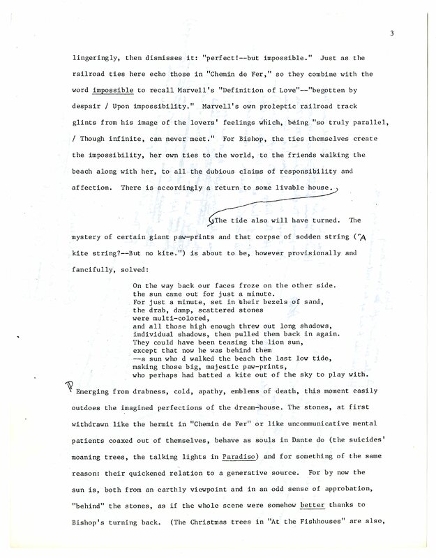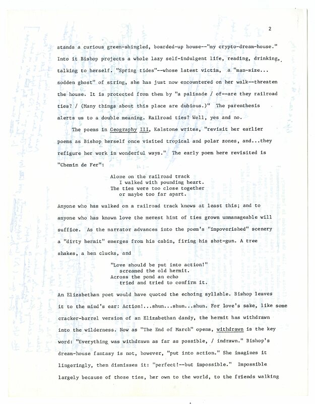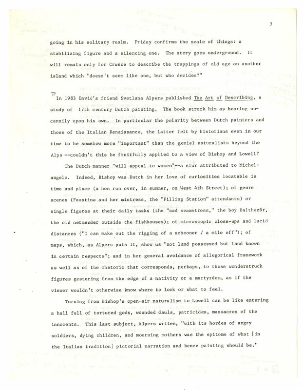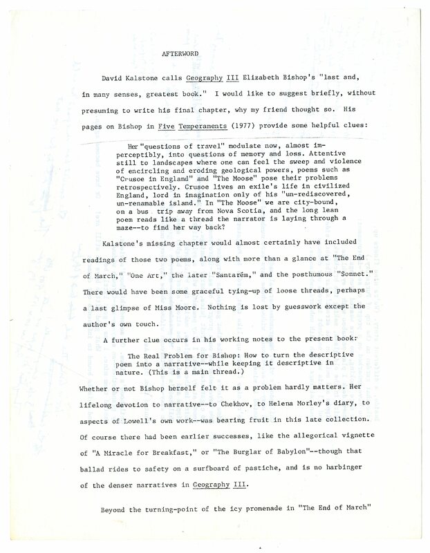 47. Page from Merrill's "Afterword" to David's Kalstone's Becoming a Poet: Elizabeth Bishop with Marianne Moore and Robert Lowell (1989). Verso of 46.