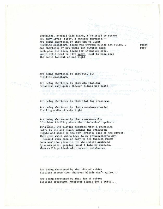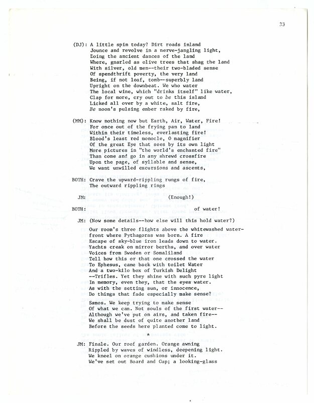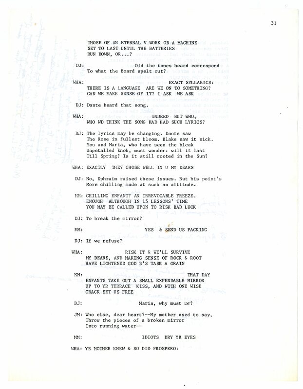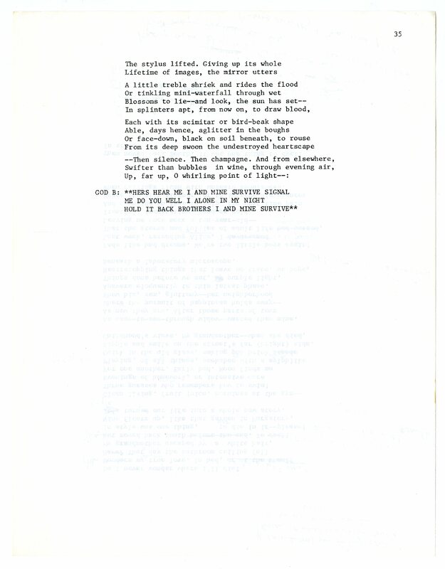 33. "The stylus lifted. Giving up its whole / Lifetime of images." Passage from The Changing Light at Sandover.