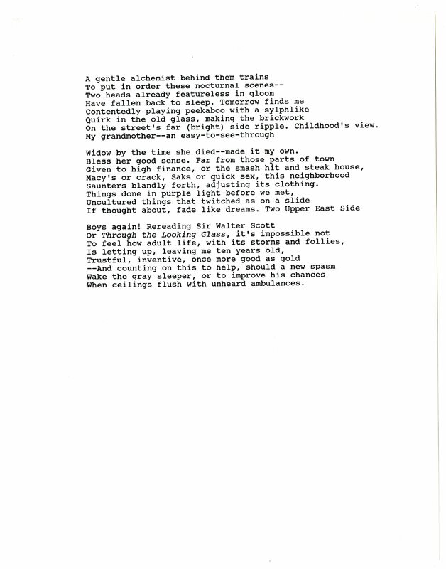 49. Page from Merrill's "Afterword" to David's Kalstone's Becoming a Poet: Elizabeth Bishop with Marianne Moore and Robert Lowell (1989). Verson of 48.