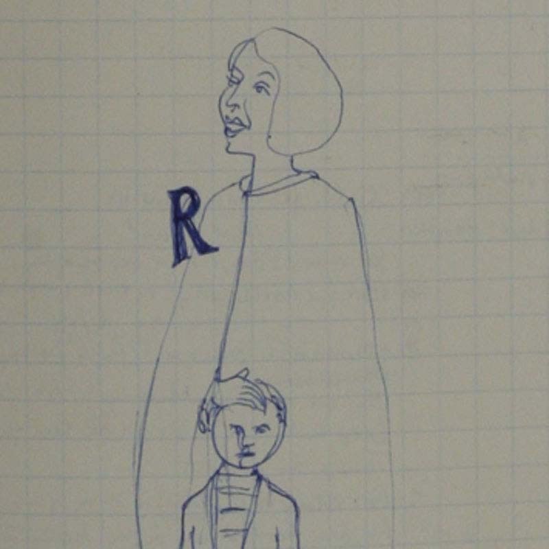 Merrill's Sketch of his Mother in a Red Cross cape (1963 Journal)